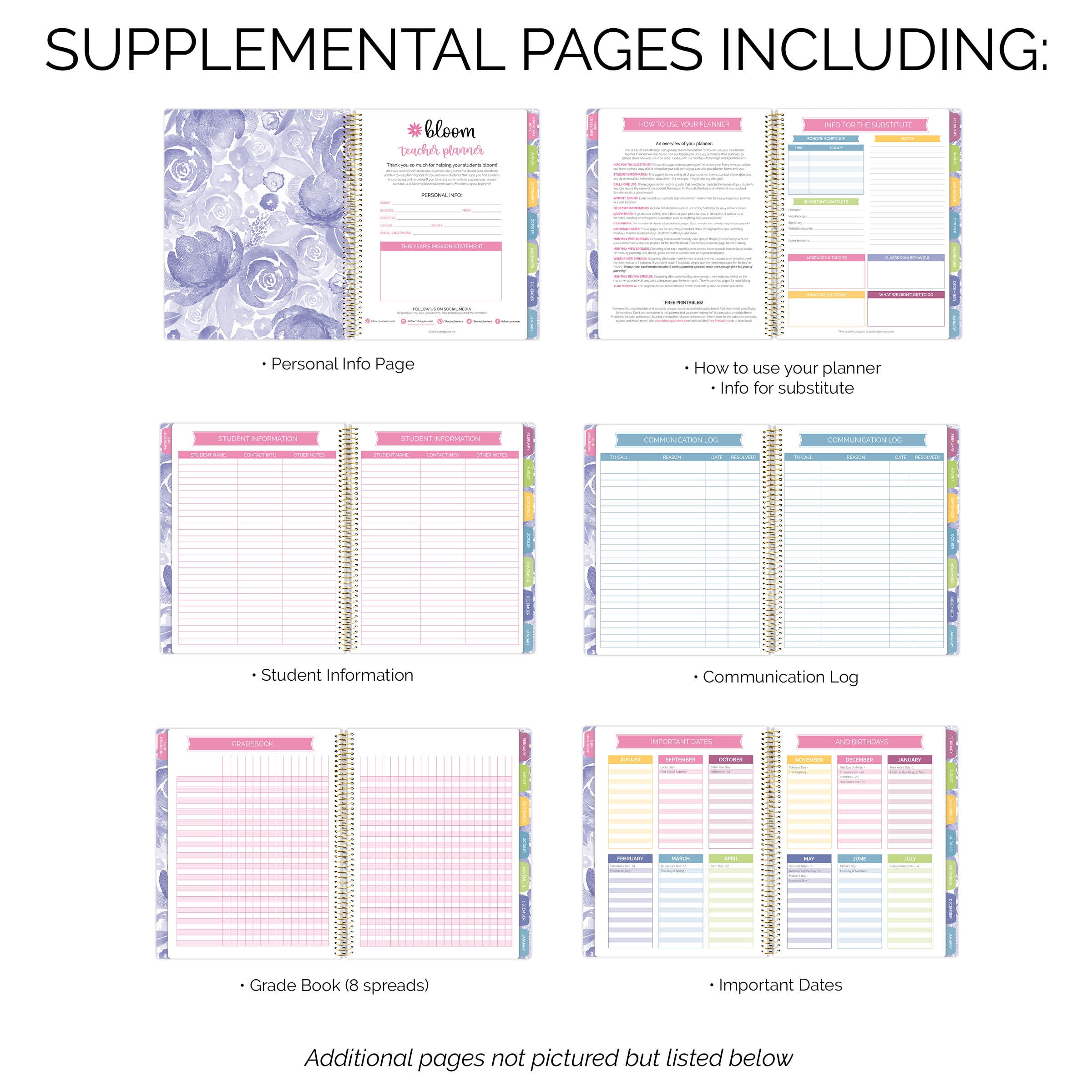 bloom daily planners Undated Academic Year Teacher Planner, Watercolor Floral, 9 x 11′