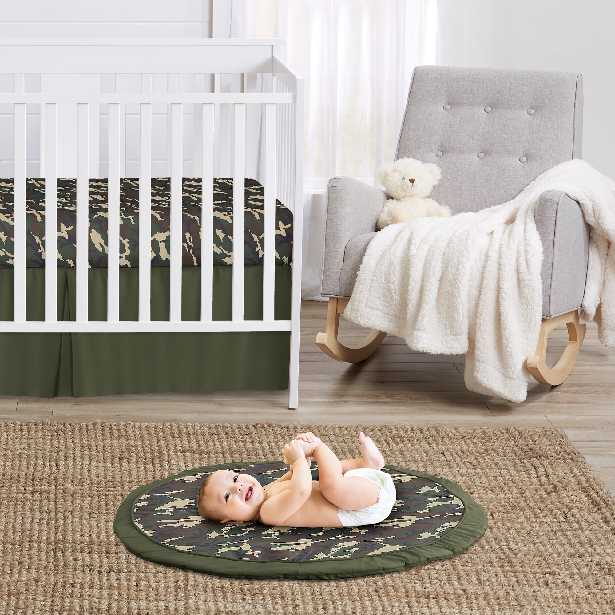 Make tummy time and child development stylish and fun with Play Mats by Sweet Jojo Designs. Made with soft fabrics and lofty fill for your baby’s comfort, this multi-functional mat comes in a variety of engaging colors and exclusive patterns. Small enough to take on the go, these adorable playmats will transform any room into the perfect play space. Great for vacations, playdates, beach outings, and everyday use. Sweet Jojo Designs Woodland Camo Boy Baby Playmat Tummy Time Infant Play Mat – Beige Green and Black Rustic Forest Camouflage