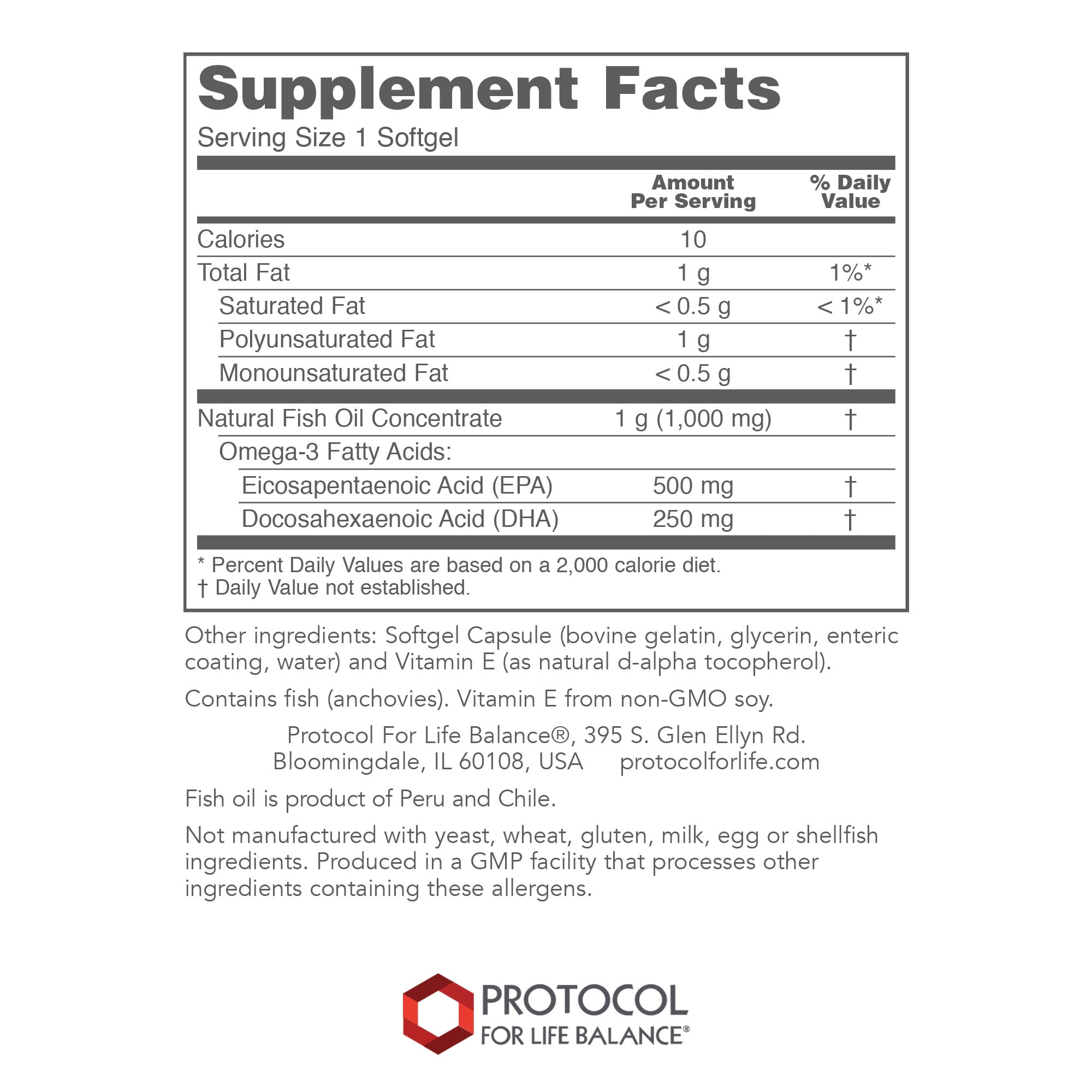 Protocol Ultra Omega-3 Fish Oil DHA 500, EPA 250 – Brain Support – 90 Softgels