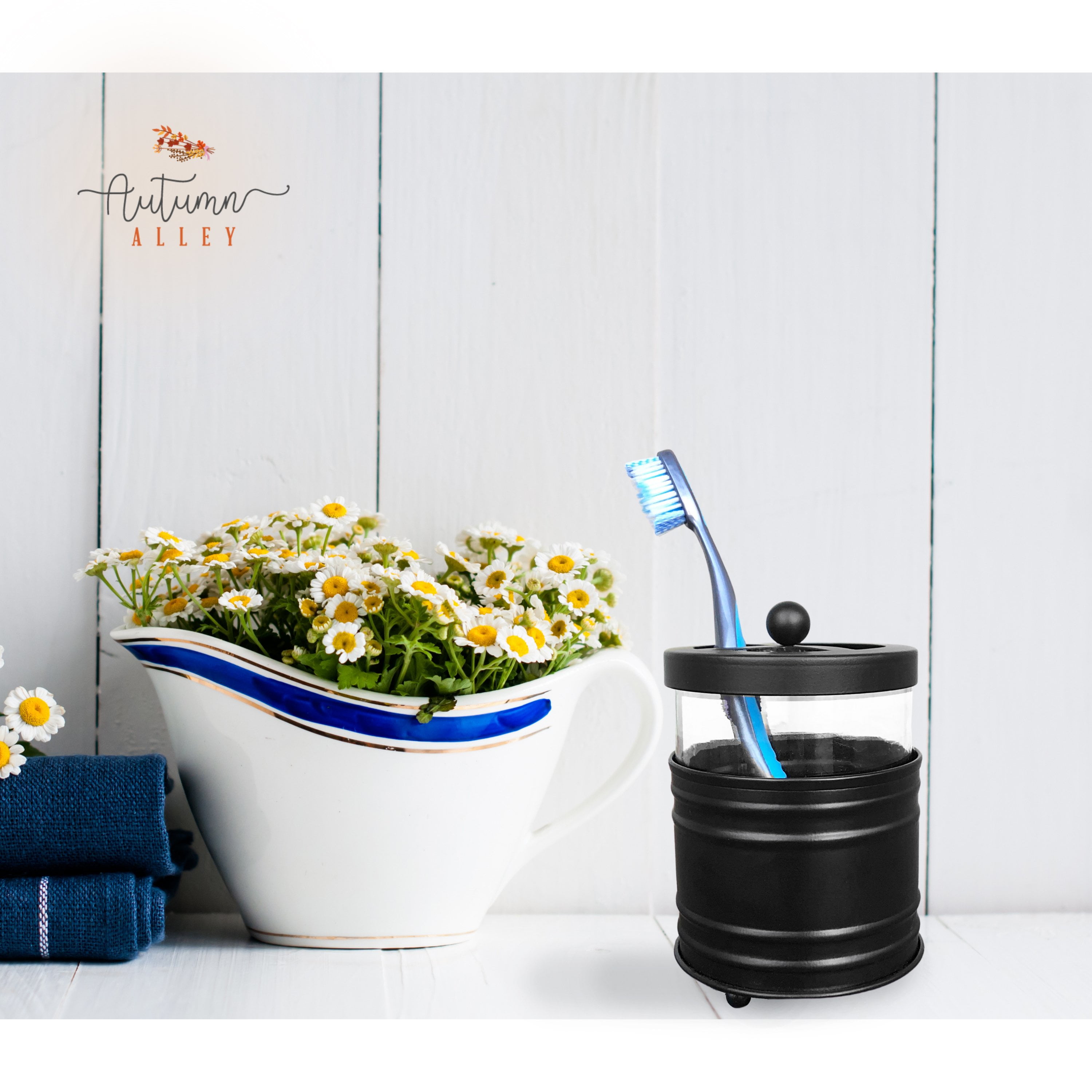 Autumn Alley glass and matte black metal farmhouse toothbrush holder with ball feet