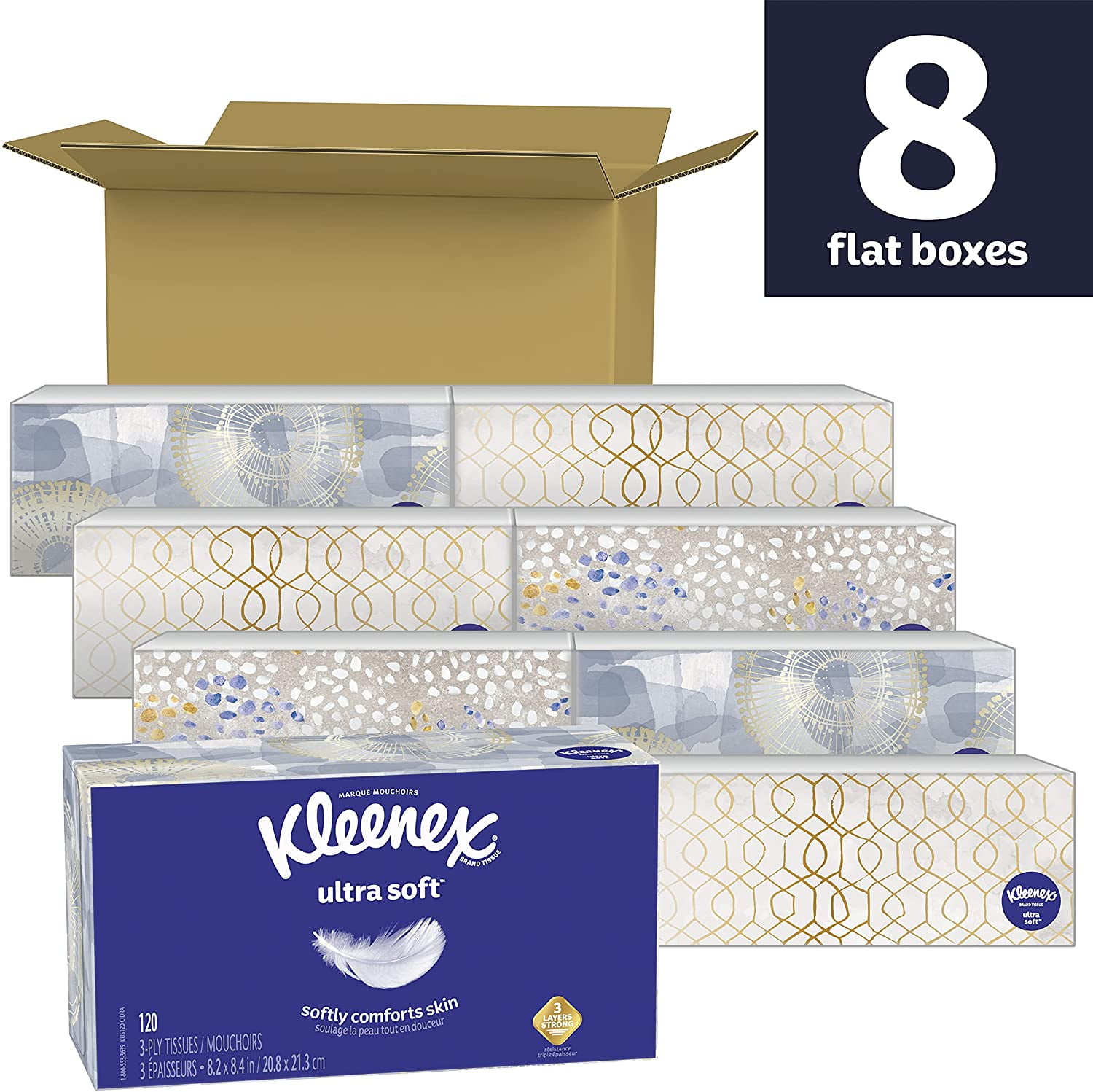 Kleenex Ultra Soft Facial Tissues, 8 Flat Boxes, 120 Tissues per Box (960 Total Tissues)