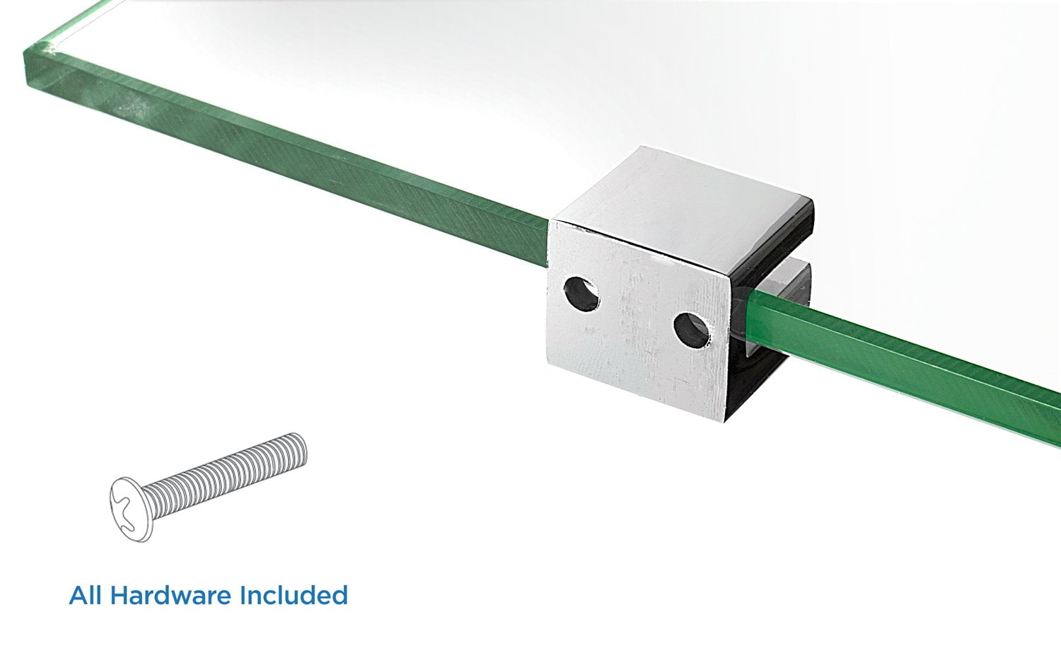 Mount-It! Corner Glass Shelf with Chrome Rail | 22 LB Capacity