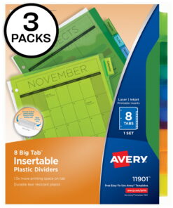 Avery Big Tab Insertable Plastic Dividers, 8 Tabs, 3 Sets of 11901