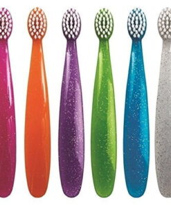 RADIUS Toddler Toothbrush Totz Brush Extra Soft BPA Free ADA Accepted Designed for Delicate Teeth for Children 18 Months & Up – Blue Coral Yellow Sparkle – Pack of 3