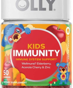 OLLY Kids Immunity Gummy, Wellmune, Elderberry, Acerola Cherries, Zinc, Chewable Supplement, Cherry Berry Flavor, 25 Day Supply, 50 Count