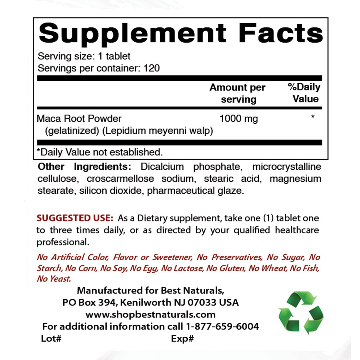 Best Naturals Gelatinized Maca 1000mg per Tablet (Non-GMO), Supports Reproductive Health, Mood, Hormonal Balance, Cardiovascular Health & Immune Health*, 120 Count