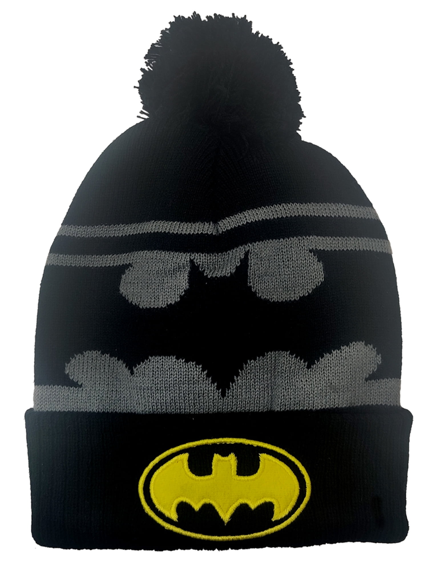 Kids DC Comics Batman Logo Knit Beanie Hat & Gloves Black Hero 2-Piece Set