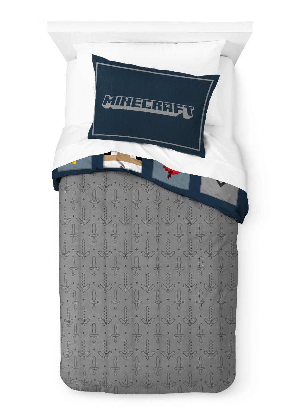 Minecraft Icons Adventure Kids 2-Piece Twin/Full Reversible Comforter and Sham Bedding Set, Microfiber, Green, Mojang, Gaming Bedding