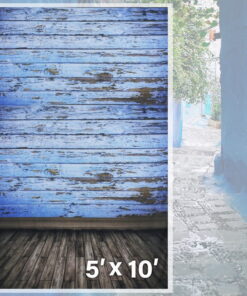 LS Photography 5 x 10 ft. Blue Wood Wall Vintage Wood Floor Screen Backdrop Background for Photo Video Studio, WMT1857