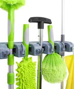 Wall Mount Mop and Broom Hanger, 5 Position with 6 Hooks Garage Storage