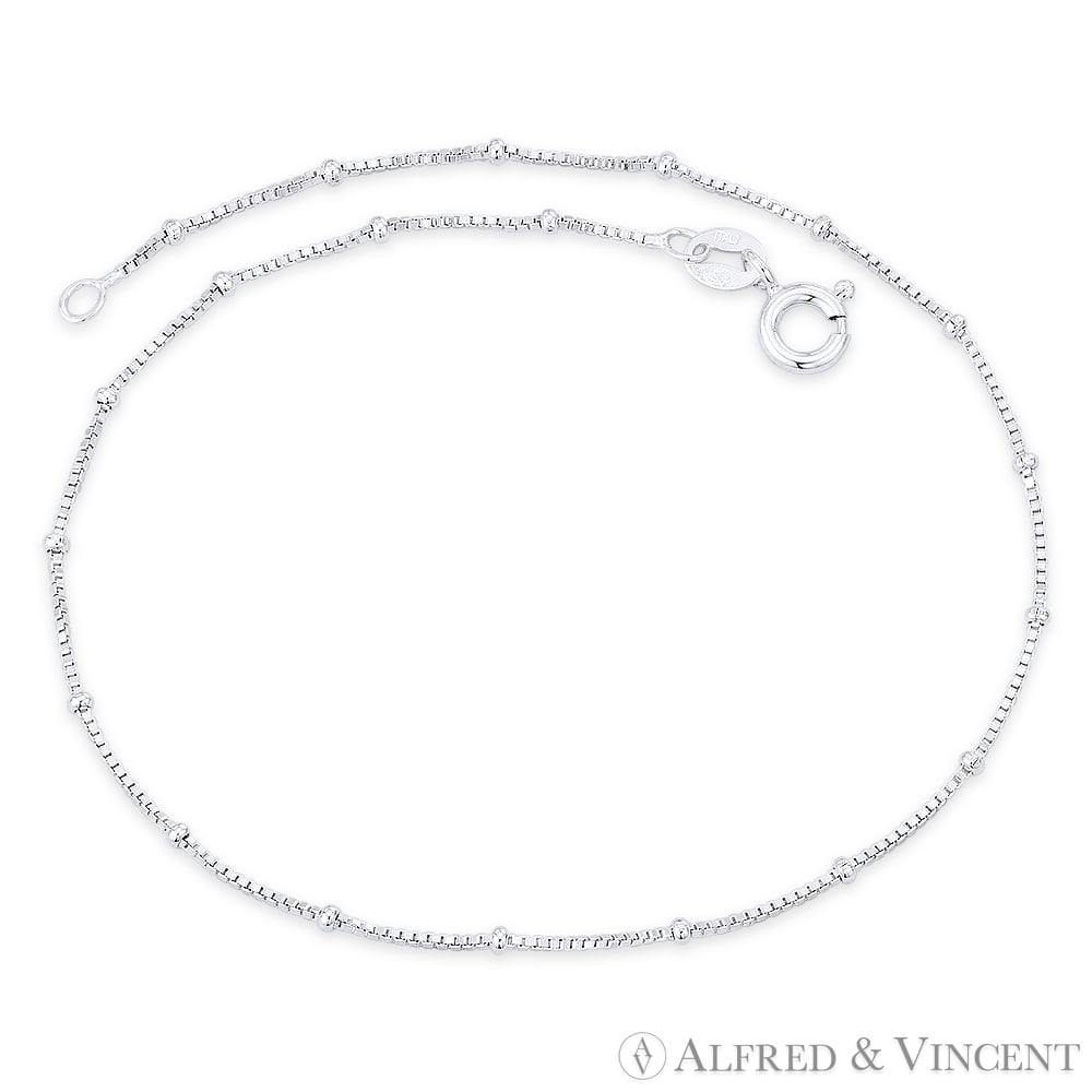 The featured Italian-made chain anklet is cast in .925 sterling silver and showcases 1.7mm bead & 0.8mm box links finished w/ a spring-ring clasp for secure wear.