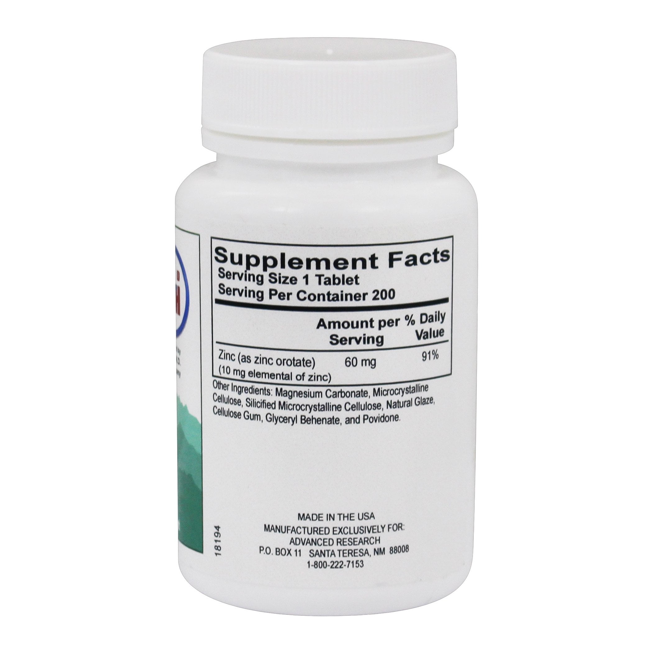 Advanced Research – Zinc Orotate 60 mg. – 200 Tablets
