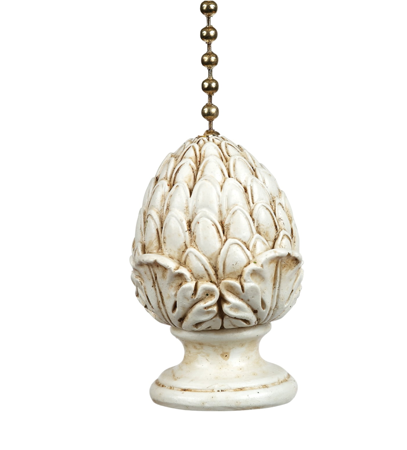 The rustic charm and gorgeous antiqued artichoke design of this ceiling fan light pull make it a must-have for your ceiling fan.