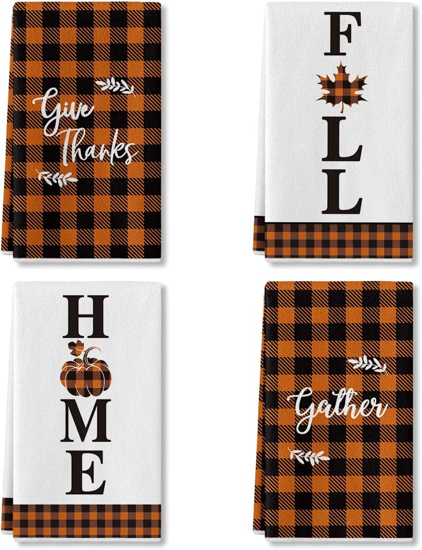 Artoid Mode Pumpkin Maple Leaf Home Fall Kitchen Dish Towels 4-Pack 18 x 26 Buffalo Plaid