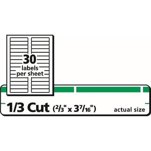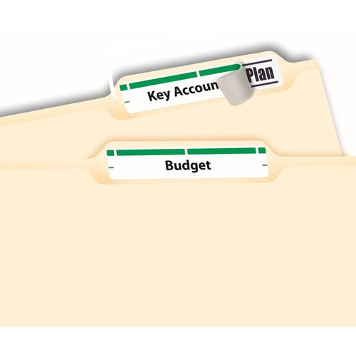 Color code your file folders, documents and binders with these file folder labels featuring green accents. Printable labels are engineered with Sure Feed technology for a reliable feed through your printer, preventing jams and misalignments-and no more wasted labels. Save money reusing file folders with these labels featuring TrueBlock technology. Labels are designed to completely cover up everything underneath, from markings to existing labels, and are guaranteed to stick and stay without curling or lifting. Custom file folder labels are available in a variety of colors. The green file folder labels 1/3 cut tabs can also be used for projects such as identifying objects and organizing containers. Customize with free templates on Avery Design & Print (avery.com/templates) to create your own filing system. Printable with laser and inkjet printers. More from the Manufacturer