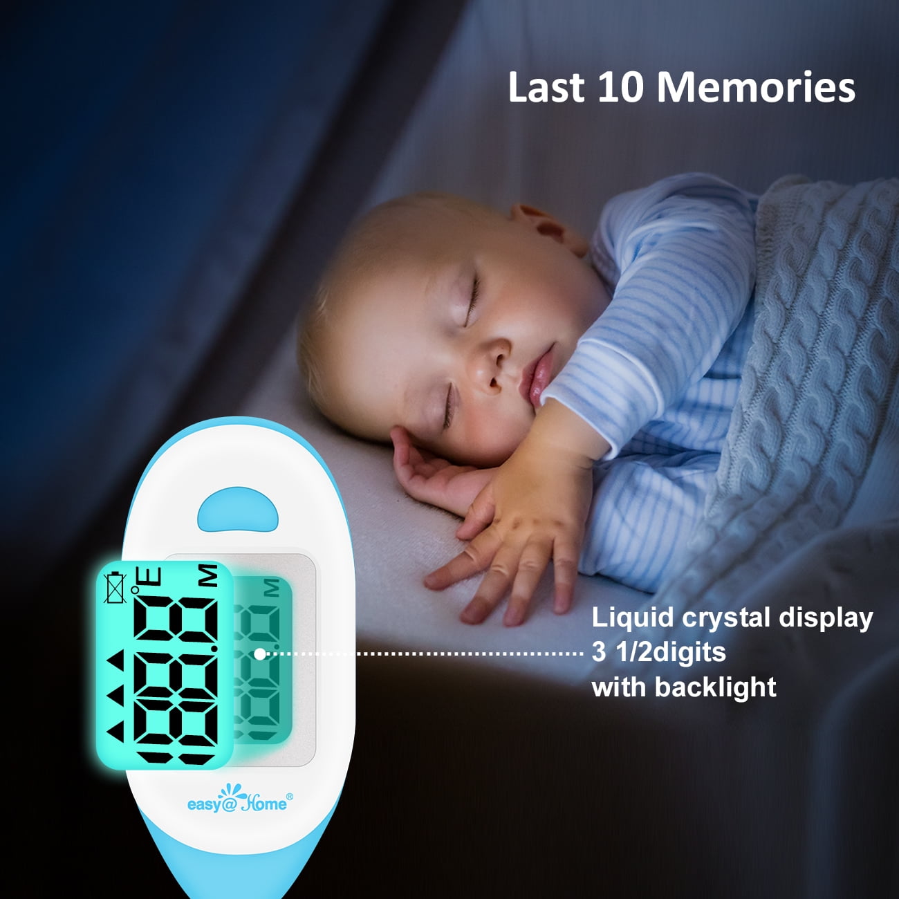 The Easy@Home EMT-026 is a deluxe, reliable and clinically accurate thermometer for everyday home use. It is designed to make oral, axillary or rectal temperature taking quick and easy. Oral temperature may be ready in as quick as 10-20 seconds.Operating mode: Direct ModeDisplay: Liquid crystal display, 3 1/2digits, with backlightTest time: 10~15 secondsWeight: Approx.079oz (26 grams)including batteryExpected service life: Approx. 3 yrsIngress Protection Rating: IP 27Ambient operating range:Temperature:41℉~104℉(5℃~40℃)Relative humidity: 15%~95%RHStorage and transportation condition:Temperature: -4℉~131℉( -20℃~55℃)Relative humidity: 15%~95%RHMemory: Last 10 memoriesBattery: One 3.0V DC button battery type CR2032Battery life: Approx. 200 hours of continuous operation or 1 year with 3 measurements per dayDimension: 3.66in×1.36in×0.71in (9.3cm×3.45cm×1.8cm)(L×W×H)