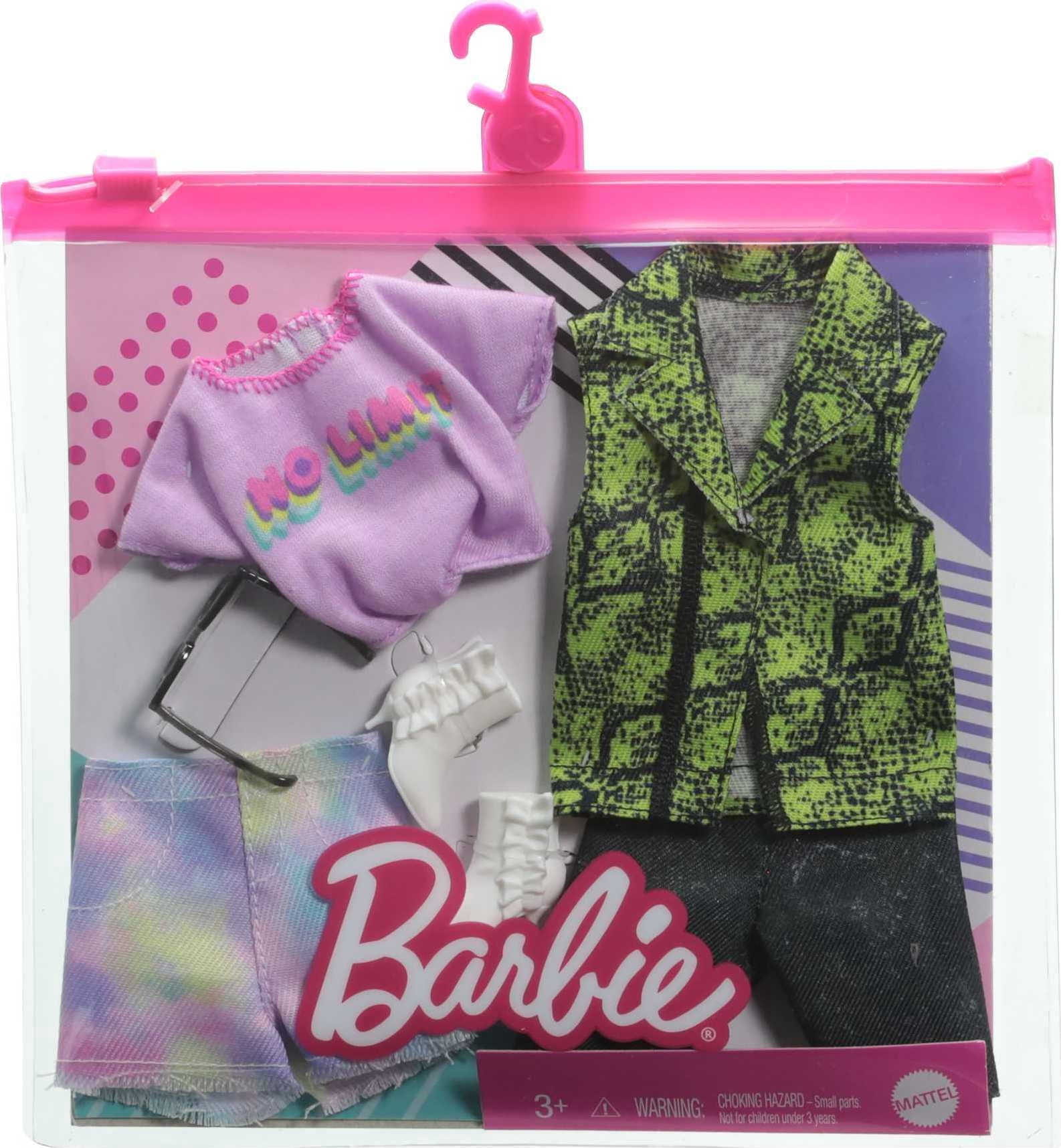 Barbie and Ken dolls are always open to new experiences and have wardrobes that can keep up! These fashion sets includes pieces that can be mixed and matched to tell all kinds of stories with both Barbie and Ken dolls (dolls sold separately) — imaginations have options for daytime looks to date night to a wedding day! Kids can find the right combination of doll clothing and accessories to find the right outfit and play out a story, then start all over again! The clothes are easy to take on and off, and the styles are right on trend. Age Grade: 3 Years and up
