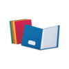 Folders offer three double-prong fasteners to bind up to 100 sheets and convenient pockets inside front and back covers for additional storage. Each pocket holds up to 25 sheets of letter-size, loose paper. Inside front pocket features business card holder. Folders are made of sturdy, leatherette paper stock, and gusset is bound into the folder.