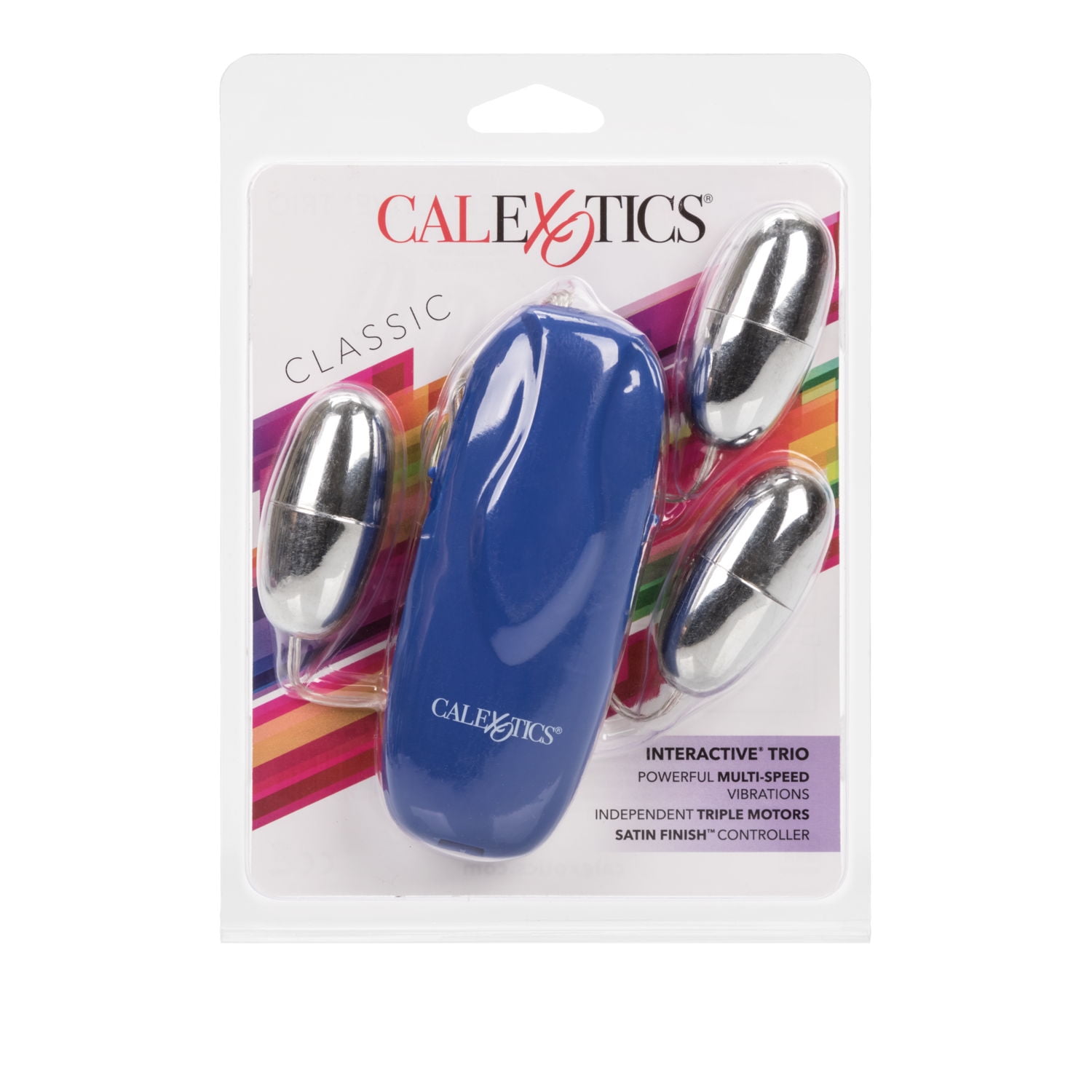 Why limit vibrating pleasure to only one pleasure zone when you can enjoy it in three? The interactive trio is a set of three powerful vibrating bullets connected to a single multispeed controller. A slider switch on the left of the controller allows the user to set the speed for a single attached bullet, while the other two vibrate simultaneously with the right switch setting. Whether used to intensify solo satisfaction or to add a whole new dimension to lovemaking, the infinite possibilities of these vibrating bullets make them three toys in one! Requires 3 AA not included. The cords are 30" long.