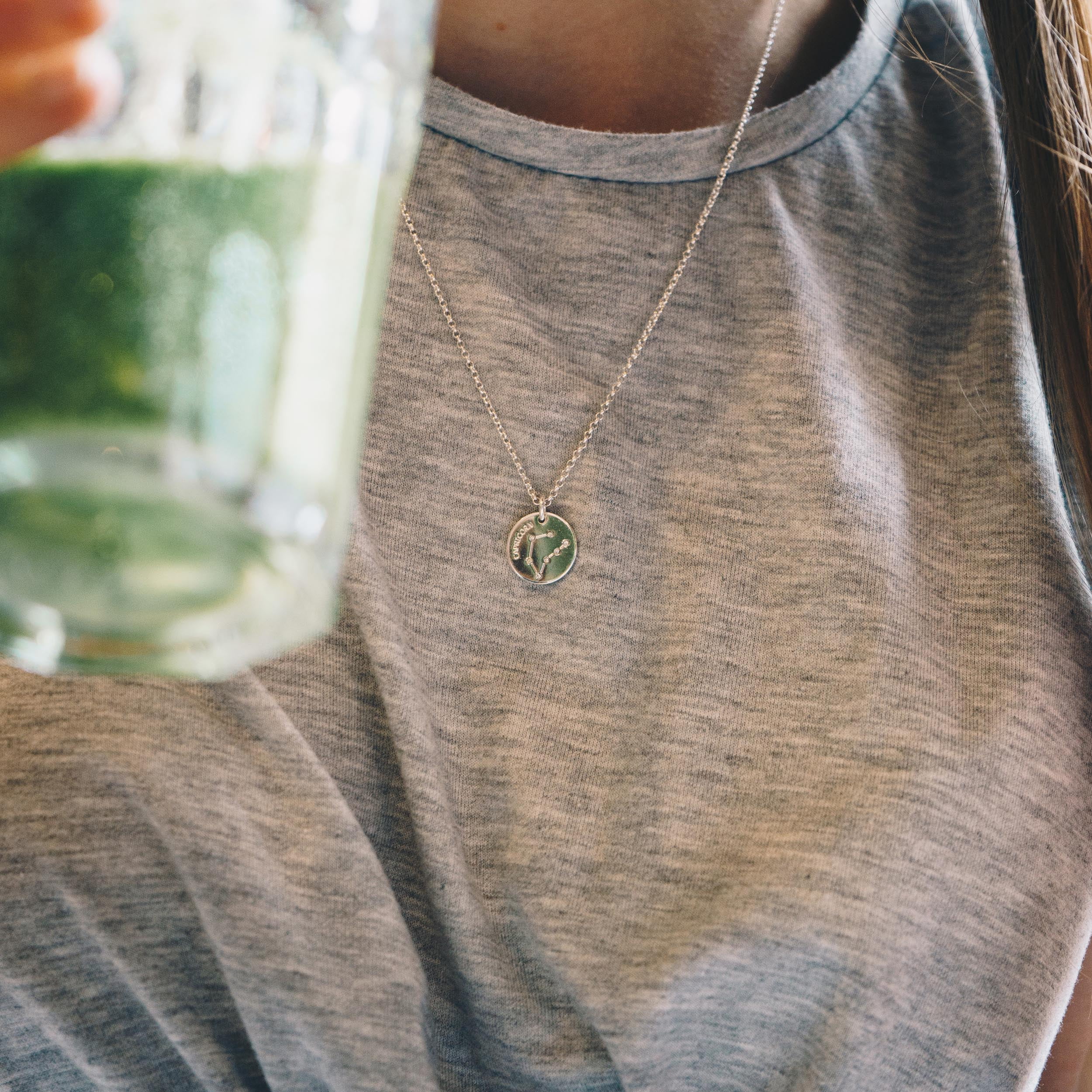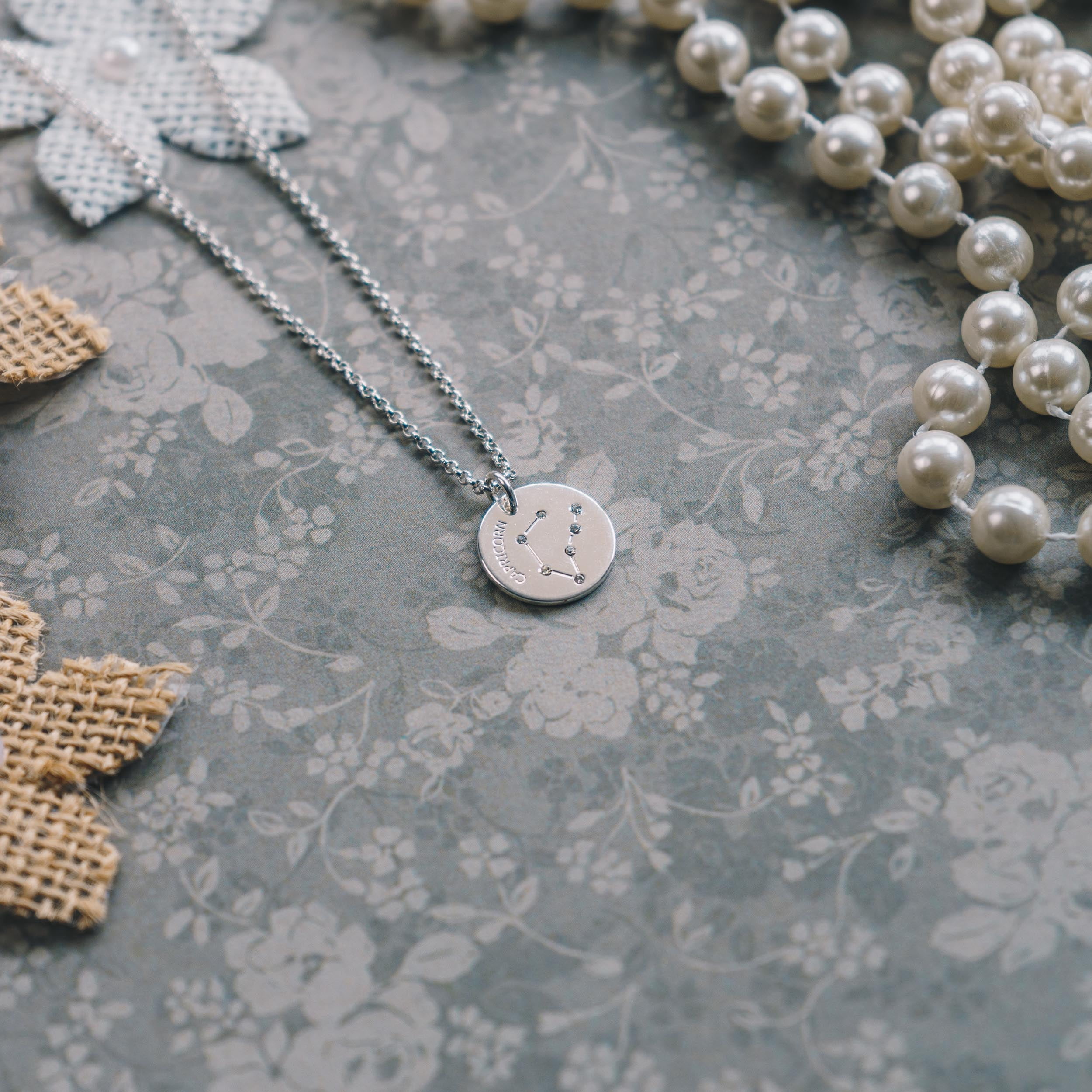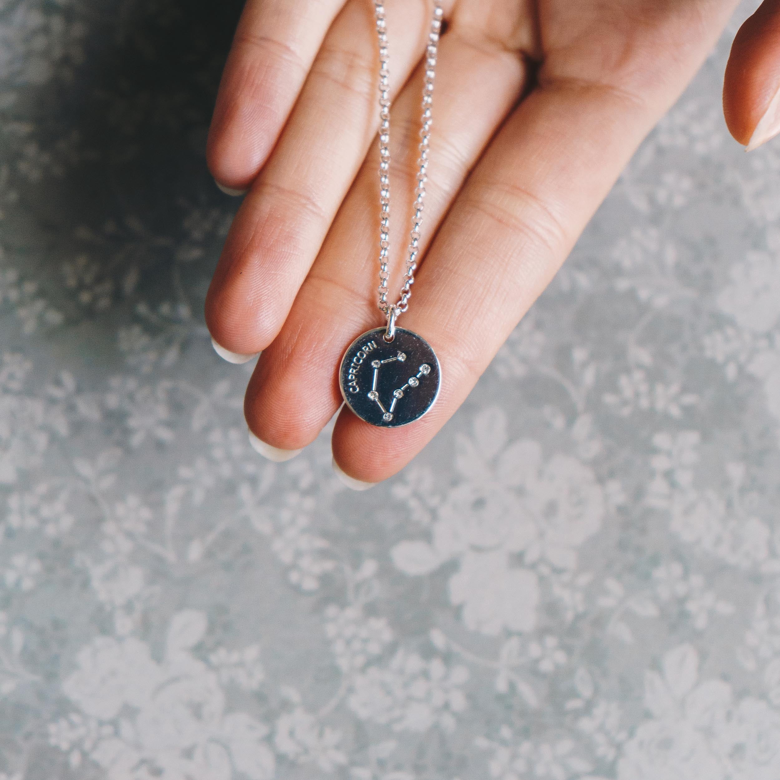 Capricorn Star Sign Disc Necklace Created with Swarovski® Crystals