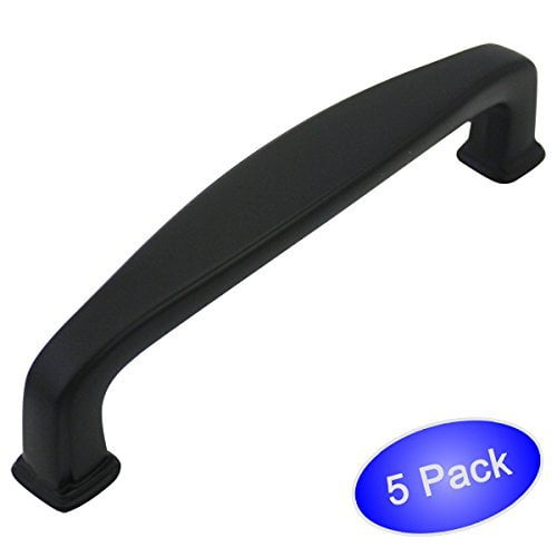 Cosmas 4392FB Flat Black Modern Cabinet Hardware Handle Pull – 3-3/4′ Inch (96mm) Hole Centers – 5 Pack