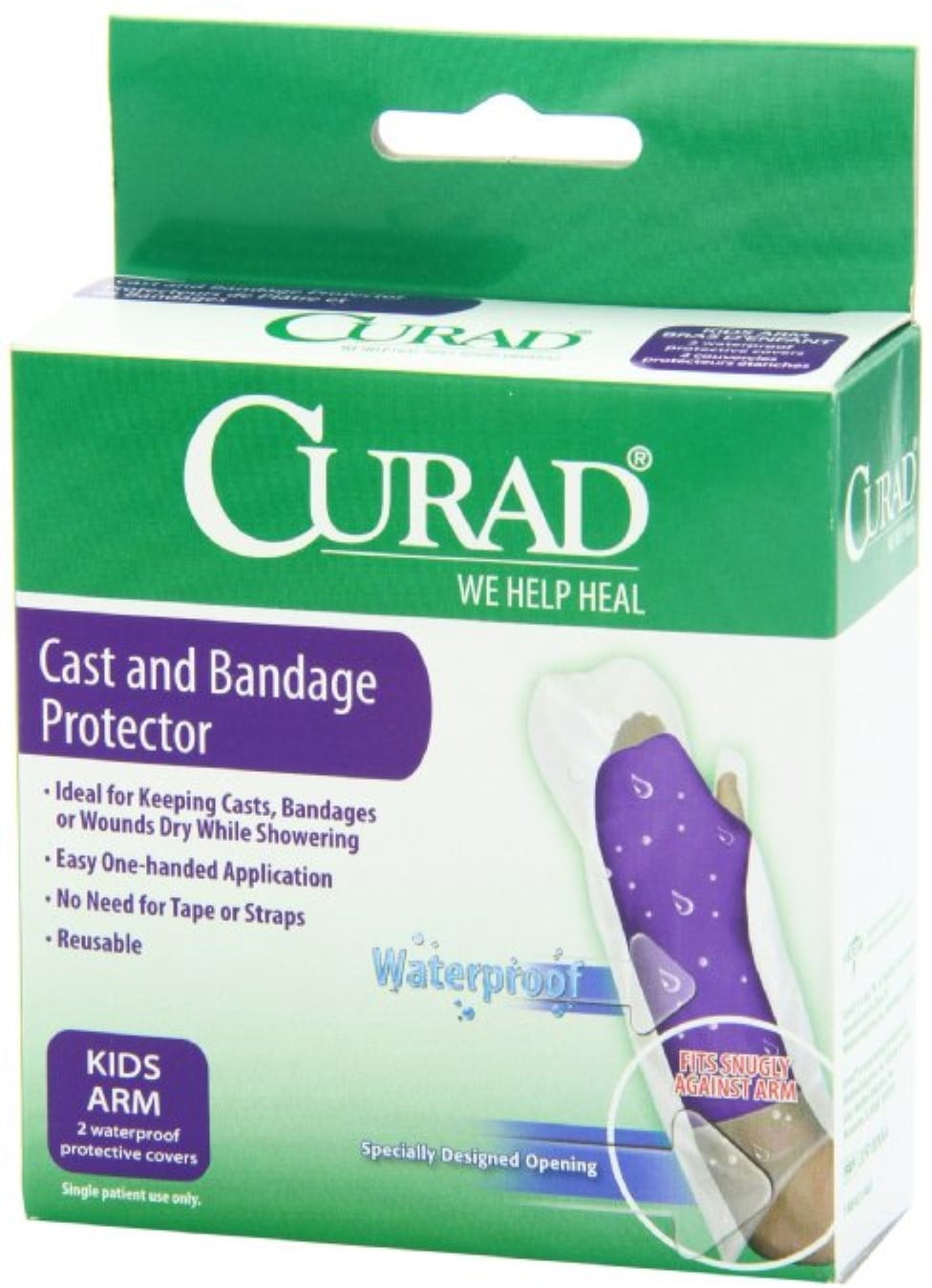 We help heal. Uses: Ideal for keeping casts, bandages or wounds dry when showering. Easy one-handed application. No need for tape or straps. Reusable. 2 waterproof protective covers. Specially designed opening stretches to fit over the cast and then returns to its original shape to fit snugly against the arm. Fits most kids under 5 feet tall (2-12 years). Protector length: 15 inches. Latex free product. Single patient use.