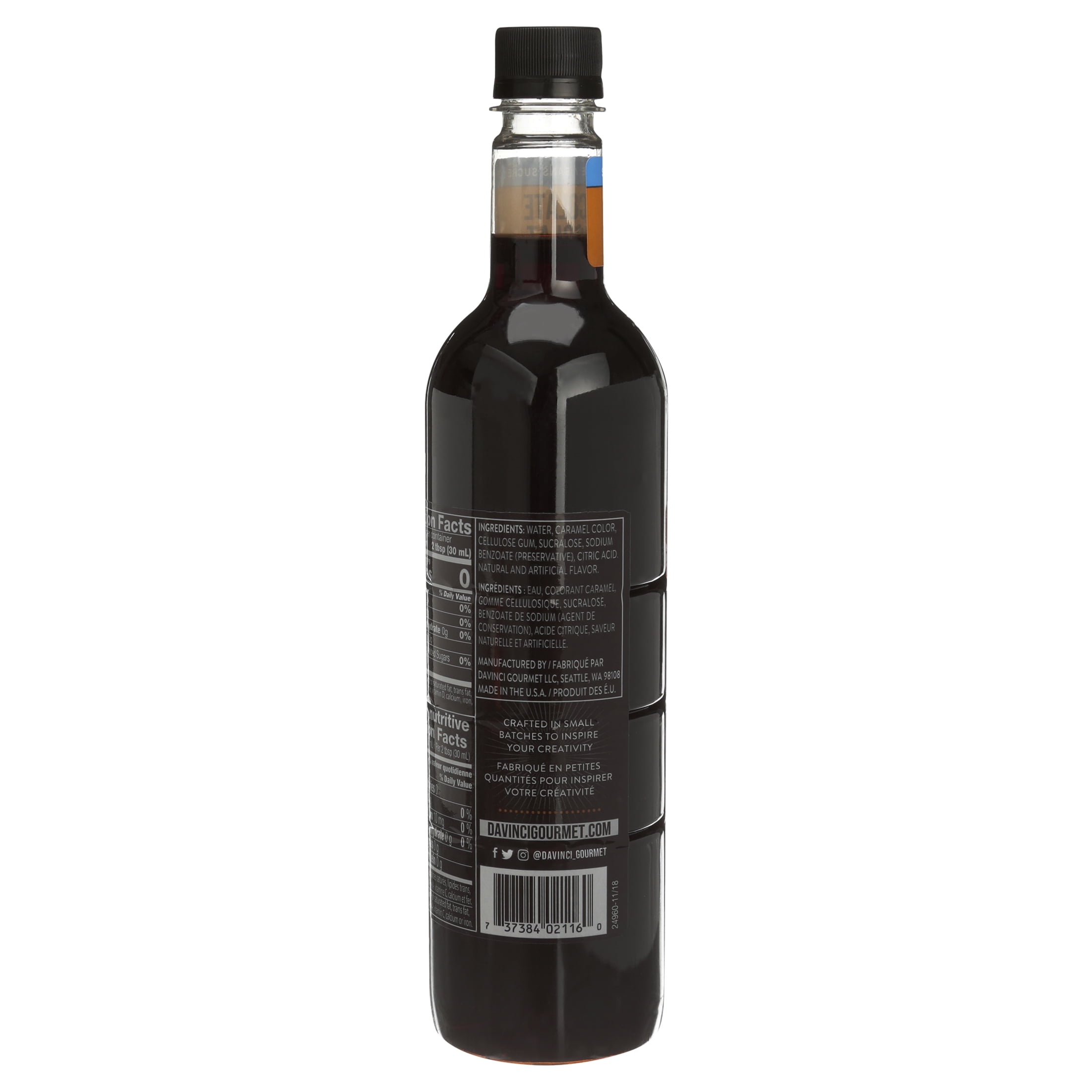 Ready to indulge? Rich, semisweet chocolate flavor is infused in every drop of our Sugar Free Chocolate syrup. DaVinci Gourmet crafts its Sugar Free syrup with the same incredible flavor as its Classic syrups, minus the calories. Made with SPLENDA, this rich-tasting syrup is crafted from the finest ingredients to ensure premium cafe-style quality. Be a barista or mixologist at home and create a hot cocoa or chocolate martini for a decadent twist. Replace your chocolate syrup recipe and invent your own signature dessert cocktail or mocktail with just a splash of this syrup. Our Sugar Free line of cafe style syrup flavorings is created with the highest-quality ingredients to ensure incomparable flavor. Worldwide, baristas and mixologists trust DaVinci Gourmet to deliver premium quality and great taste. You, too, can indulge in an unforgettable taste experience from the comfort of your home. Flavor every moment.DaVinci Gourmet Sugar Free Syrup, Chocolate, 750ml