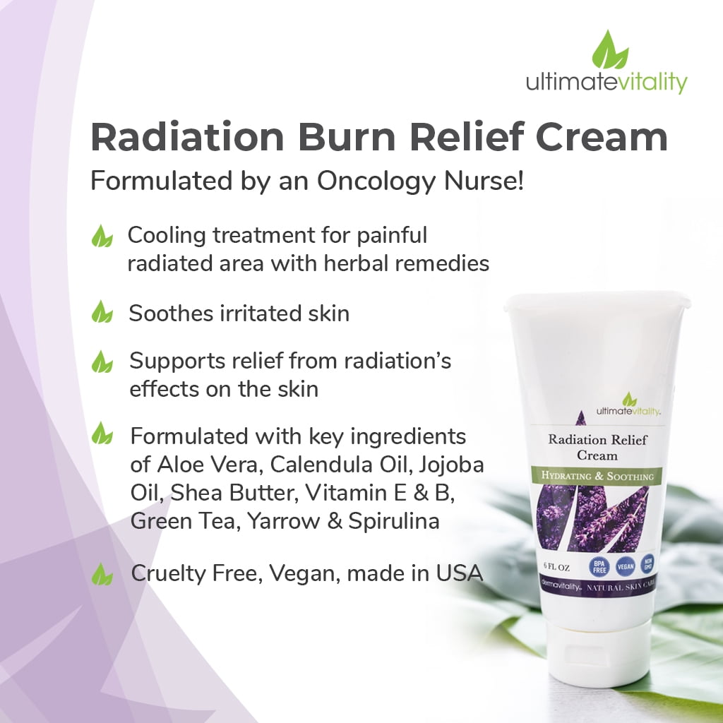 Ultimate Vitality’s radiation burn cream is formulated by an oncology nurse with over 10 years of experience. We carefully selected natural herbal ingredients that help provide relief from radiation’s effects on the skin at an affordable price. Our Radiation burn cream is Paraben, Sulfate Pthalate and Petro Chemical Free. All of our natural ingredients are sourced whenever possible from local farmers in the southwest desert. This provides visibly potent skincare from the earths most potent plants.