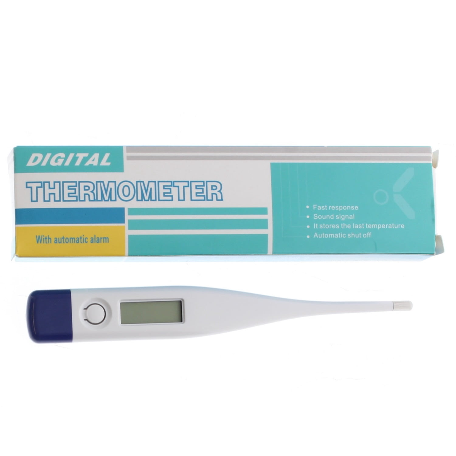 Oral, rectal or underarm use. Fast response. Sound signal. It stores the last temperature. Automatic shut off.Digital Thermometer with Automatic Alarm (Not Waterproof)