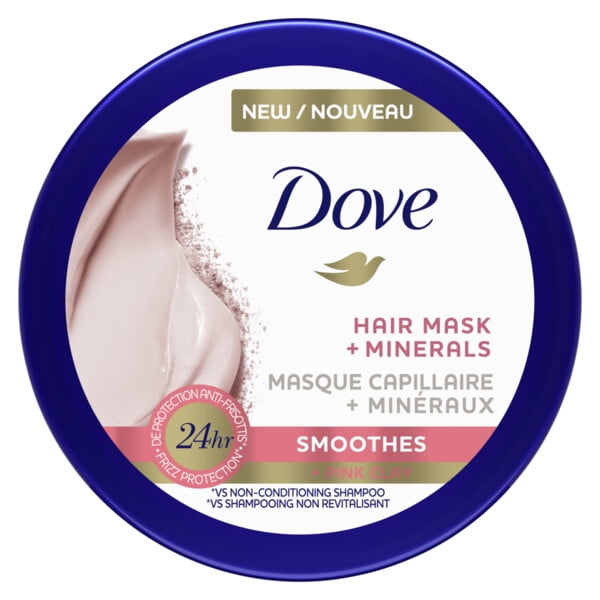 - Dove Mineral Hair Mask Smoothes + Pink Clay gives you nourishing hair care for frizzy hair
