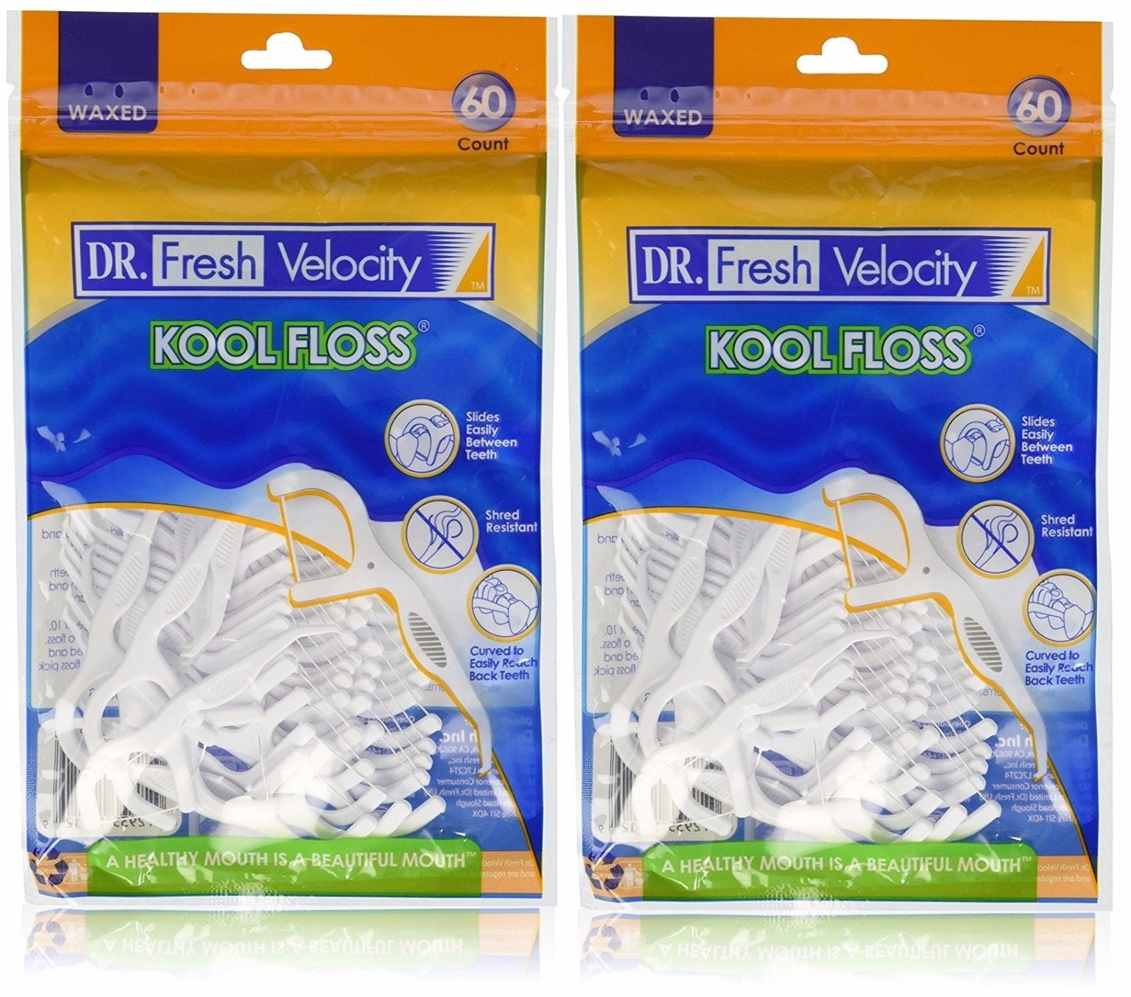 Dr Fresh Velocity Kool Floss Waxed toothpicks 60 Count (2 packs)