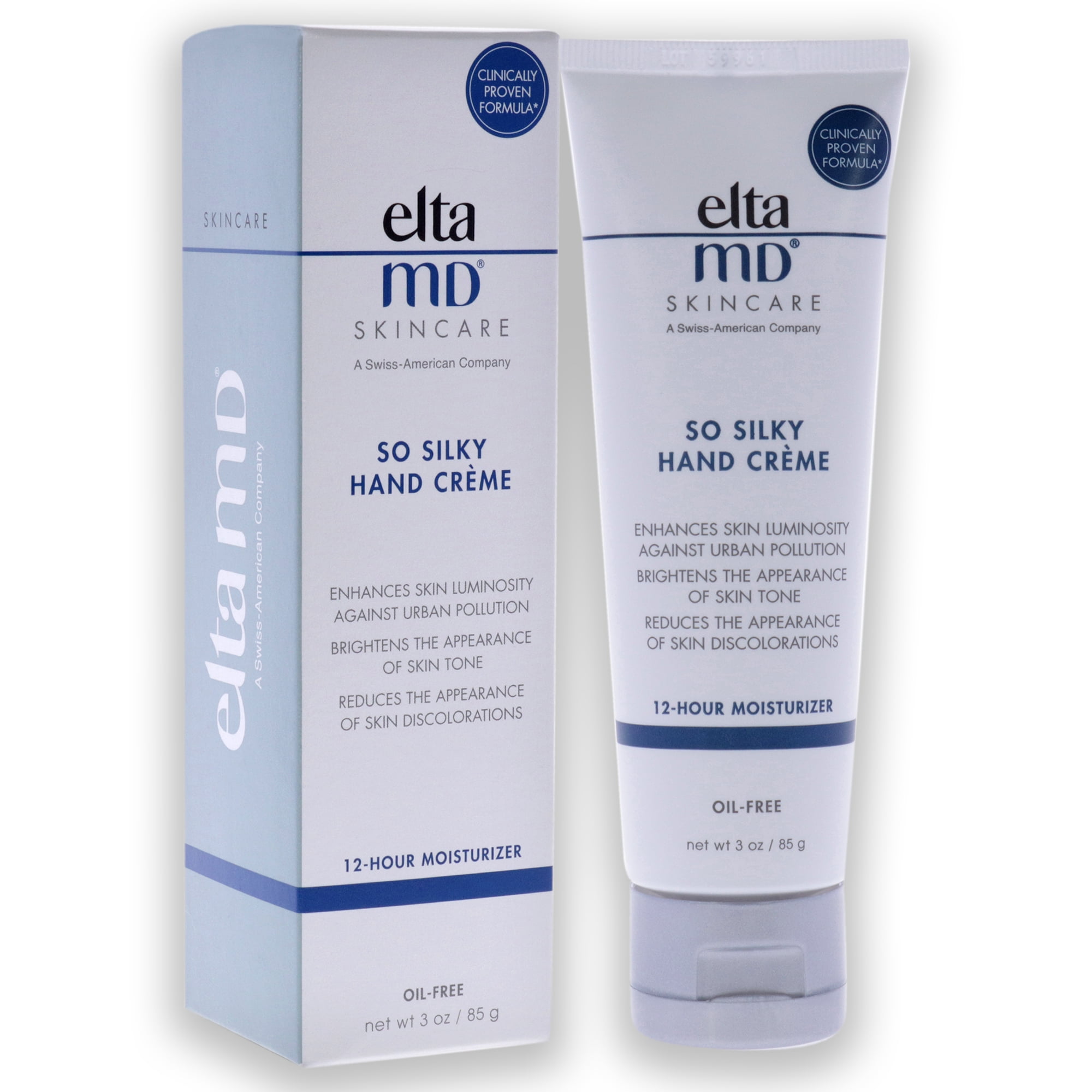 Purified Water, Caprylic/Capric Triglyceride, Glycerin, Cetyl Alcohol, Dimethicone, Ethyl Hexyl Isononanoate, Potassium Cetyl Phosphate, Hydrogenated Palm Glycerides, Hydrolyzed Jojoba Esters, Jojoba Esters,Tocopheryl Acetate, Ceramide NP, Cholesterol, Ceramide EOS, Ceramide NS, Ceteareth -25, Ceramide EOP, Ceramide AP, Caprooyl Sphingosine, Caprooyl Phytosphingosine, Silica, EDTA Disodium , Xanthan Gum, Sodium Polyacrylate, Hydroxyacetophenone, 1,2-Hexanediol, Sclareolide, Behenic Acid, Titanium Dioxide, Mica.EltaMD So Silky Hand Creme, 3 oz.