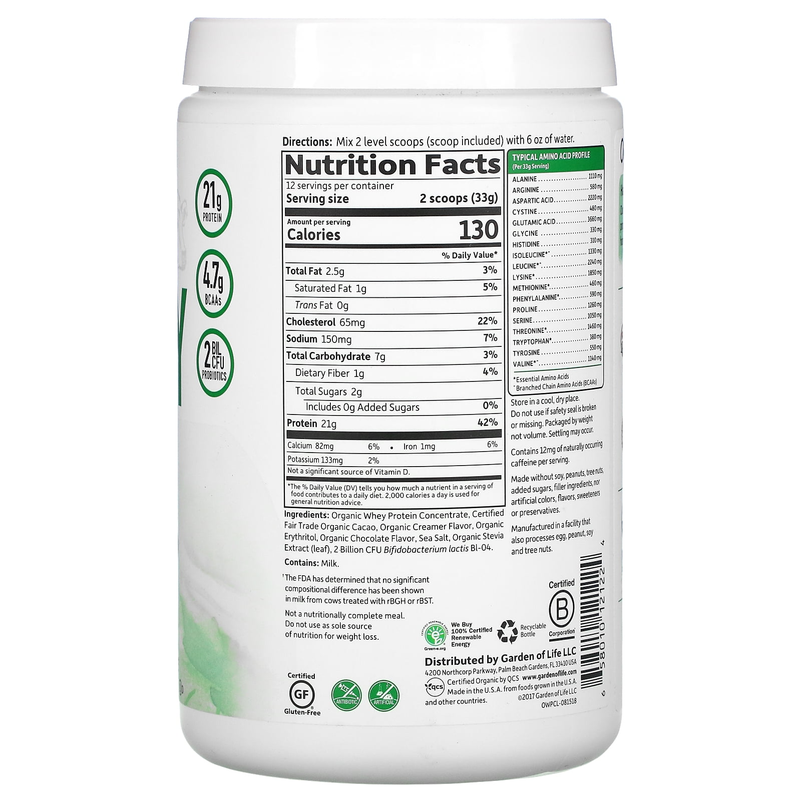 - 30g of protein and 6.9g of BCAAs per serving (one scoop)
