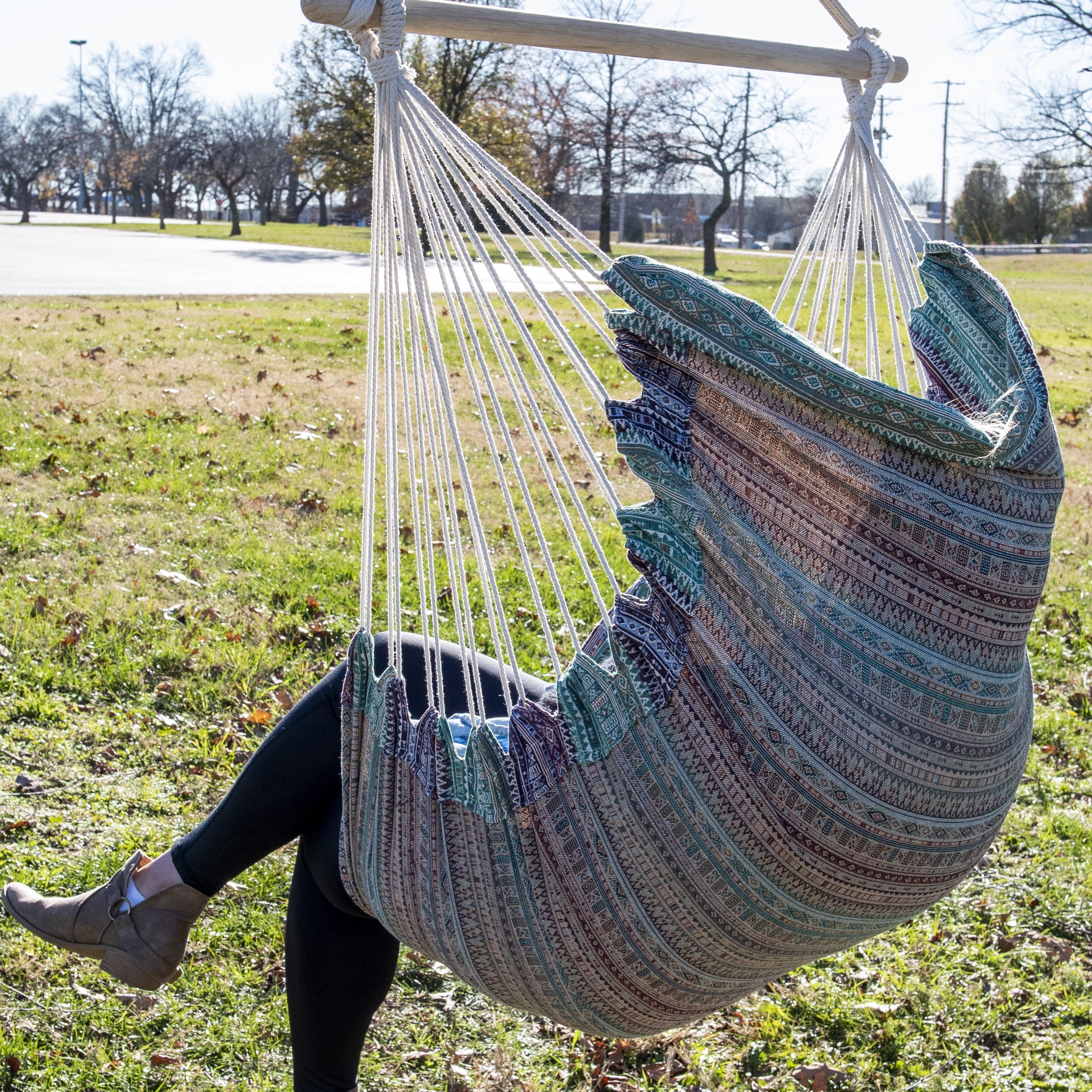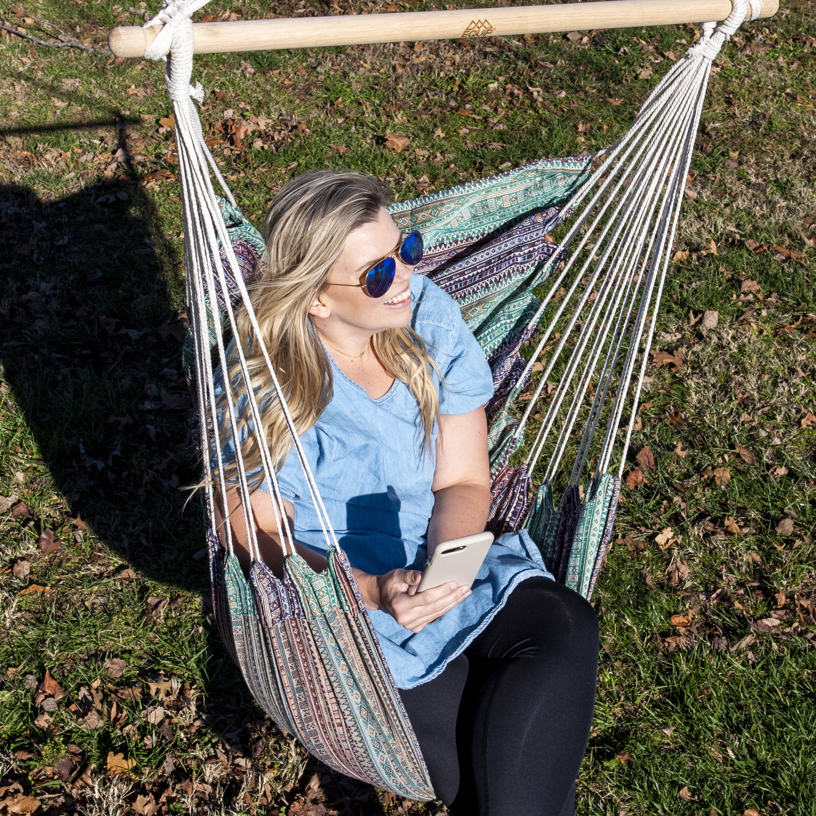 Equip Jacquard Swing One Person Hammock Chair, Cotton Polyester Blend Blue Culture Collab Pattern