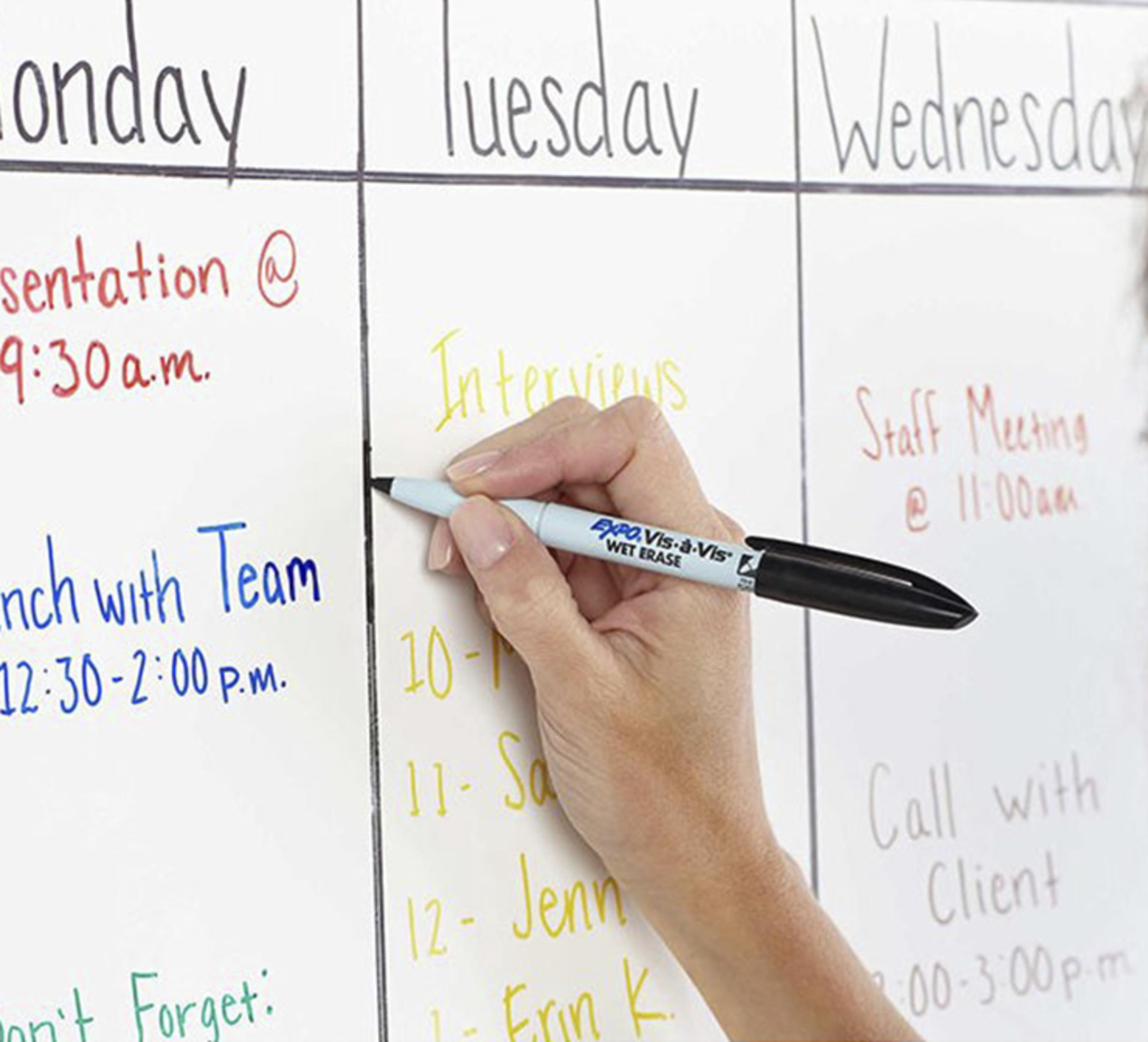 - EXPO Vis-a-Vis wet erase markers that easily wipe off with a damp cloth