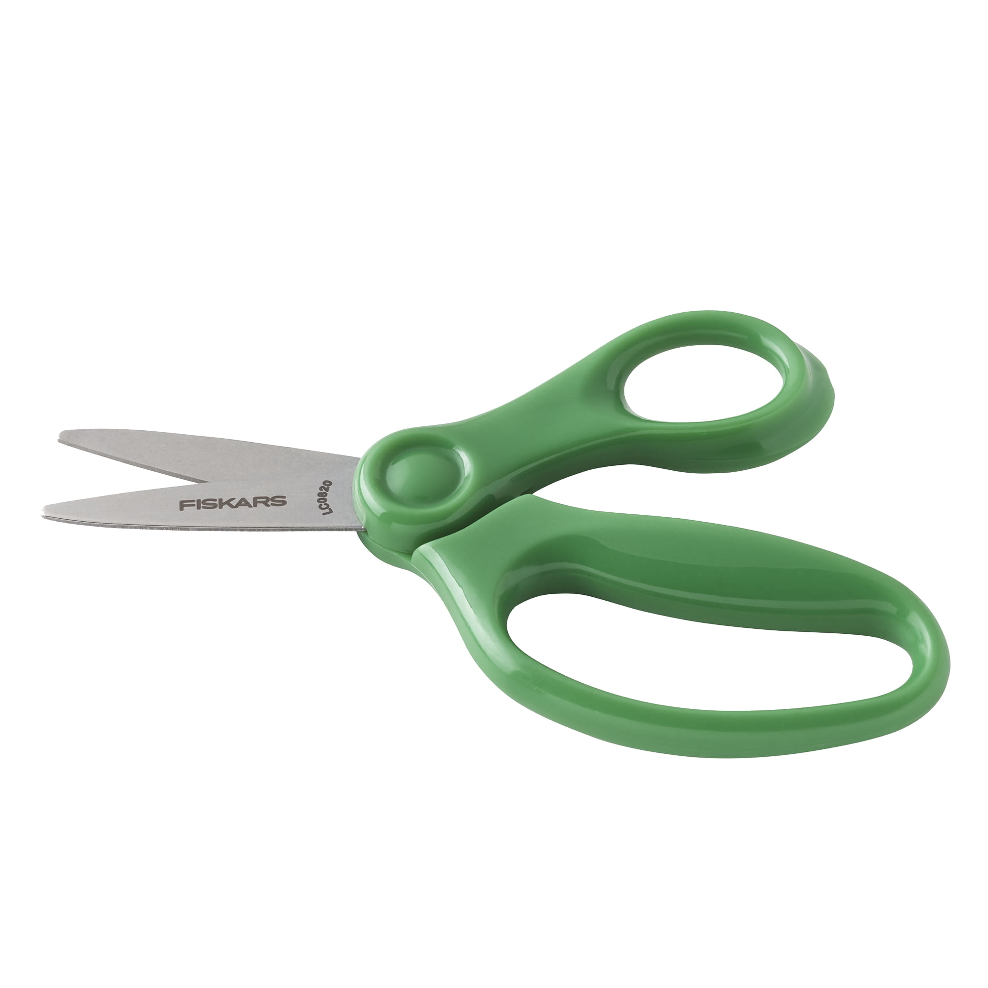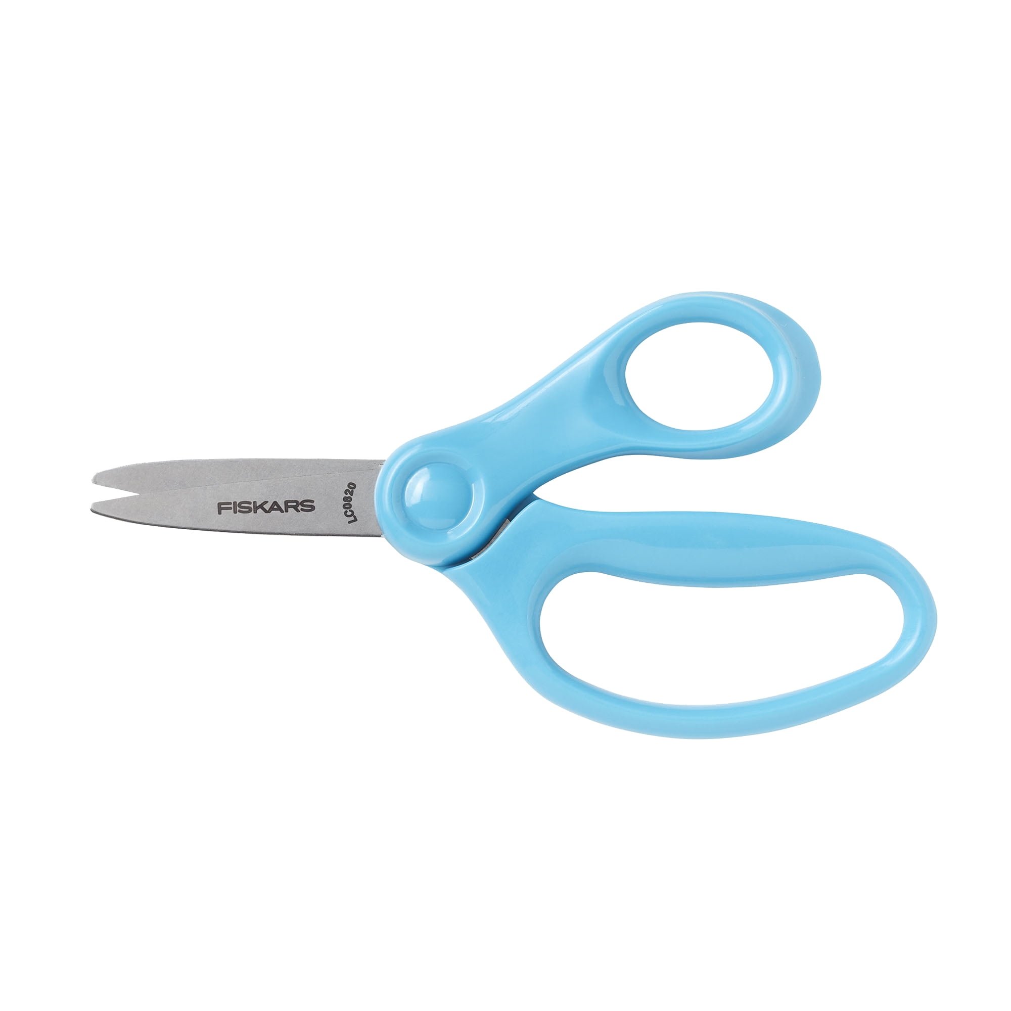- Fiskars 5" Pointed Kids Scissors (Ages 4+) feature handles designed just for kids, as well as innovative, safety-edge blades with a safer blade angle