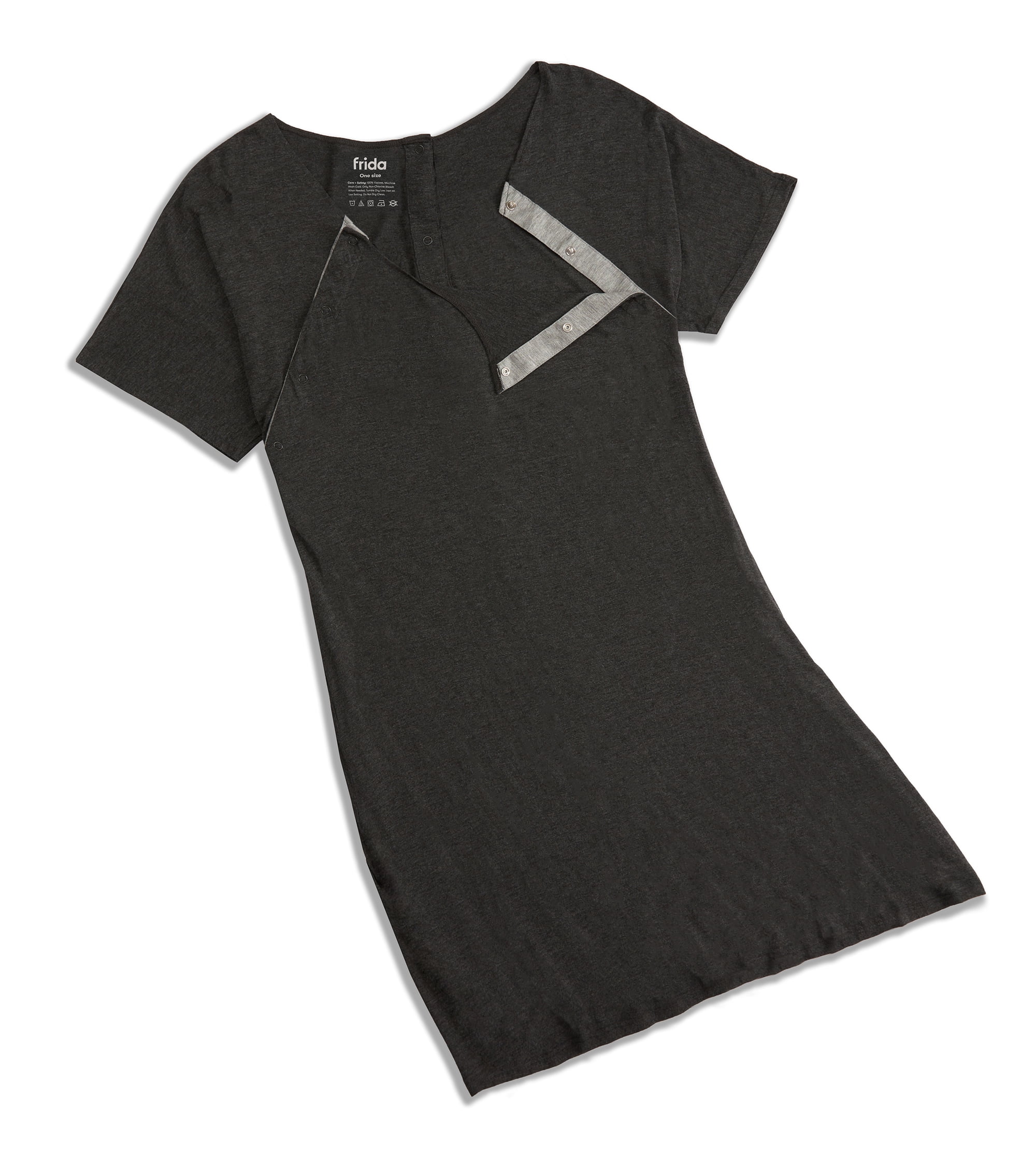 We’ve got you covered with this tshirt-soft gown for when it all goes down. Designed for easy nursing and skin-to-skin access in the front, and full-coverage comfort in the back, you’ll look and feel better from first contractions to first photos. FULL-BACK CLOSURE: Full-length rear snaps for discrete coverage on the move and easy access for epidural or fetal monitor. ;FOLD-DOWN FRONT PANELS: Snaps to waist for skin-to-skin bonding time and easy nursing access. ;SUPER-SOFT, STRETCHY JERSEY MATERIAL: Ditch the starchy floral print hospital gown for this ultra-comfy gown with pockets (yes, pockets!). Made of 100% breathable viscose. ;ONE SIZE: Thanks to its stretchy, soft material, the gown fits XS – XL (Waist 36" – 48" and Bust 36" – 50").;HOSPITAL BAG ESSENTIAL: Don’t forget to pack this hospital-friendly labor and delivery gown for when it goes down. ;INCLUDES: 1 gown