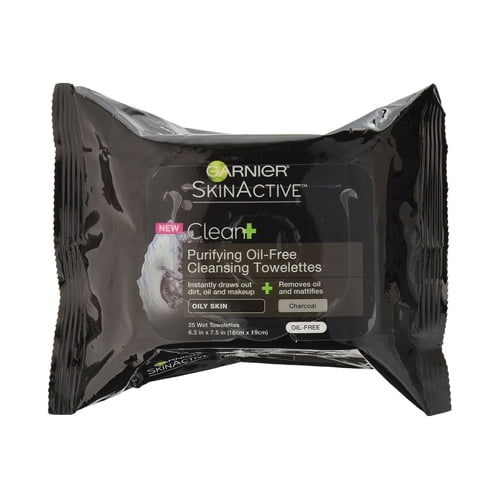 Garnier Clean Plus Purifying Oil Free Cleansing Towelettes, Charcoal, 25 Ea, 2 Pack