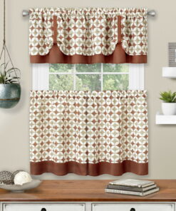 What’s Included: (1) Valance + (2) TiersValance Measures: 58 in. W x 14 in. LTiers Measure: 28 in. W x 36 or 24 in. (Each) 2 IncludedFabric Content: 100% PolyesterDesign: Plaid CheckStyle: Country ChicCare Instruction: Machine Washable, Iron on Lowest Setting as Needed