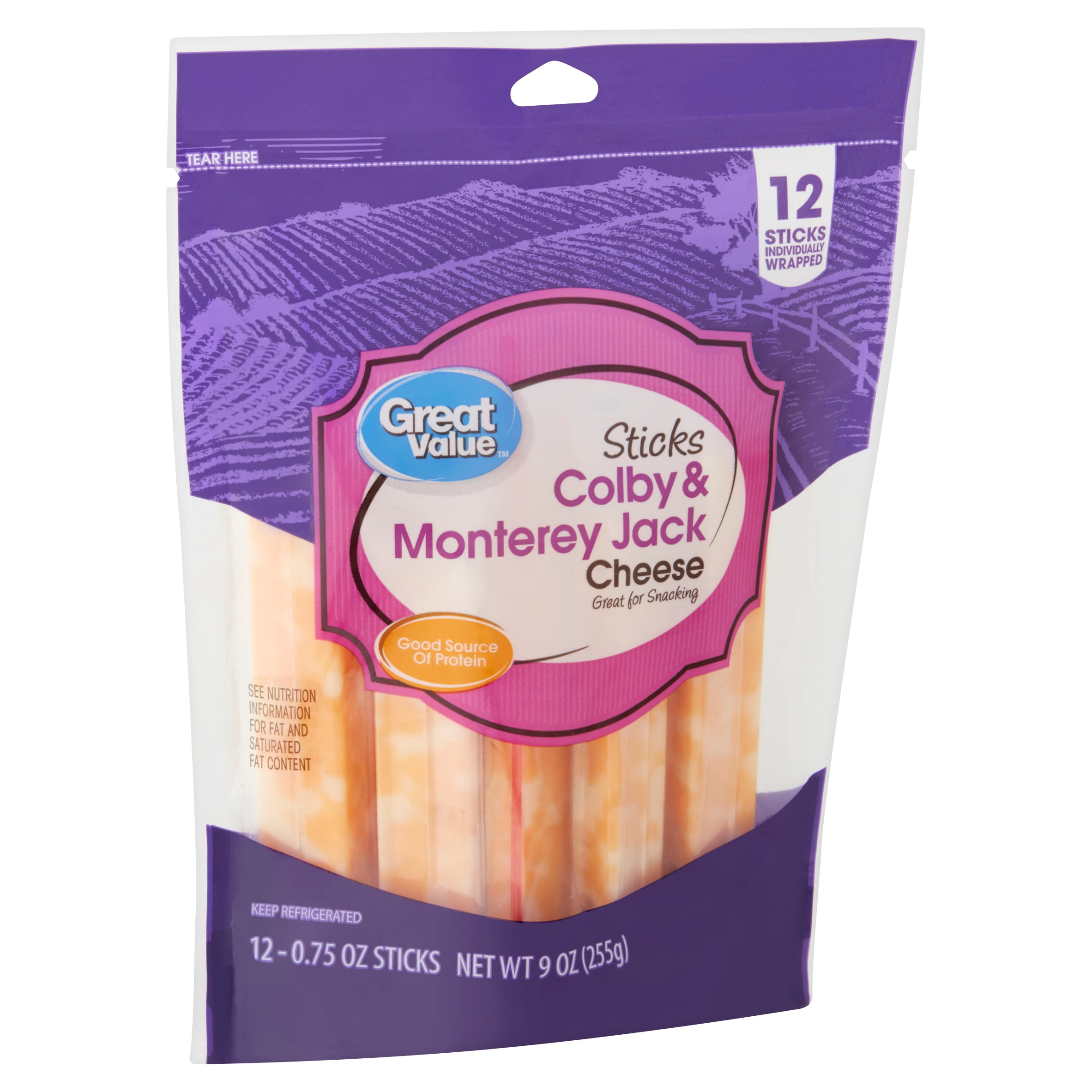 Great Value Gluten Free Sticks Colby Monterey Jack Cheese, 0.75 Oz, 12 Ct