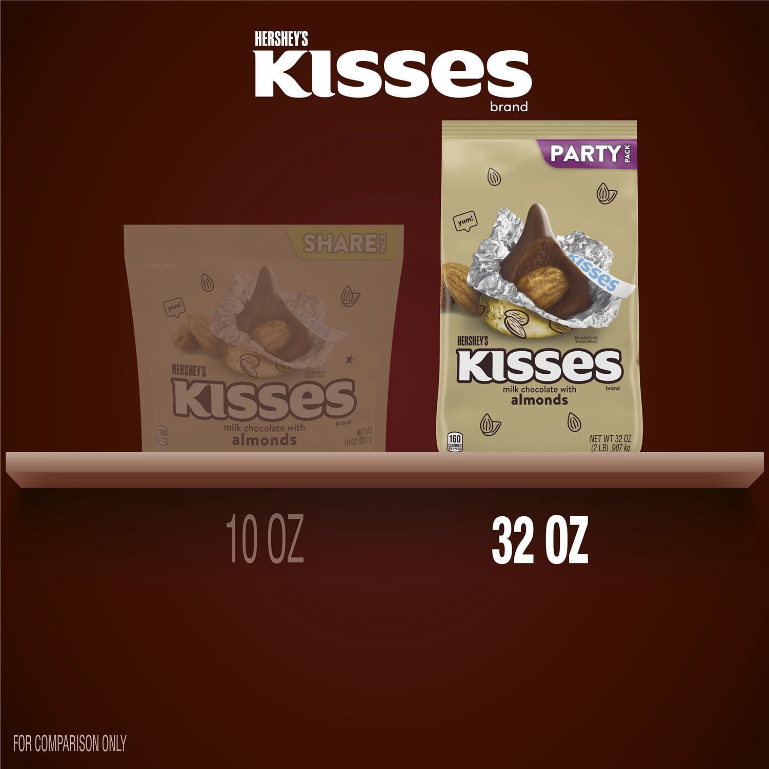 - Contains one (1) 32-ounce bulk party bag of HERSHEY’S KISSES Milk Chocolate with Almonds Candy