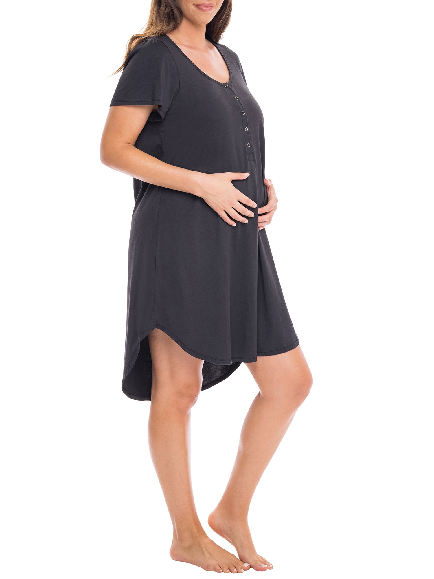 Kindly Yours Women’s Maternity Short Sleeve Cotton Modal Nursing Henley Solid Sleep Dress