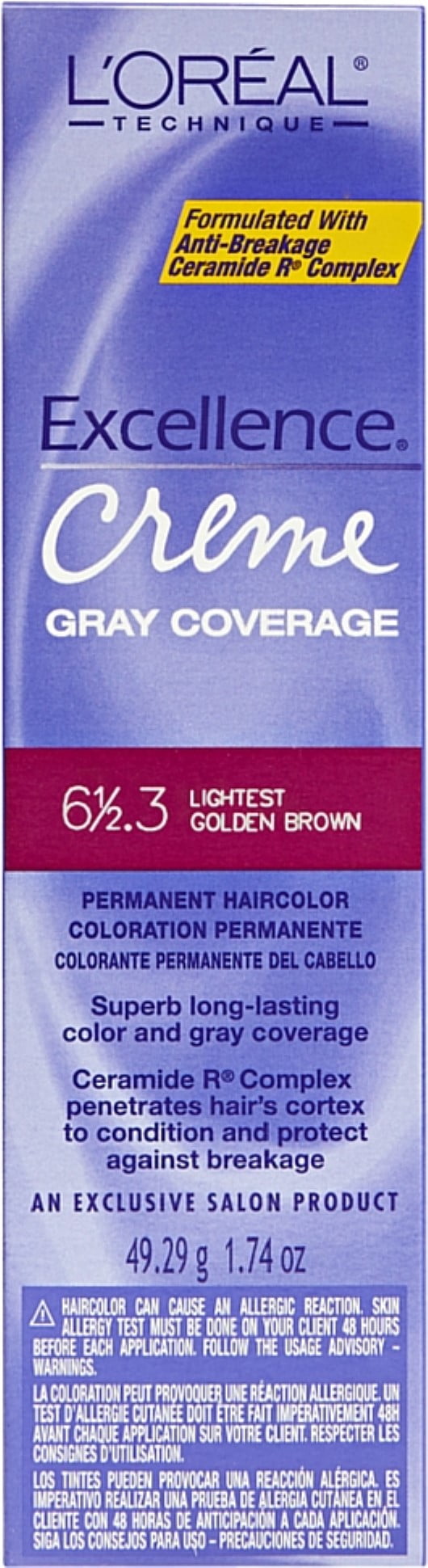 L’Oreal Excellence Creme Gray Coverage Permanent Hair Color, Lightest Golden Brown [6 1/2.3] 1.74 oz