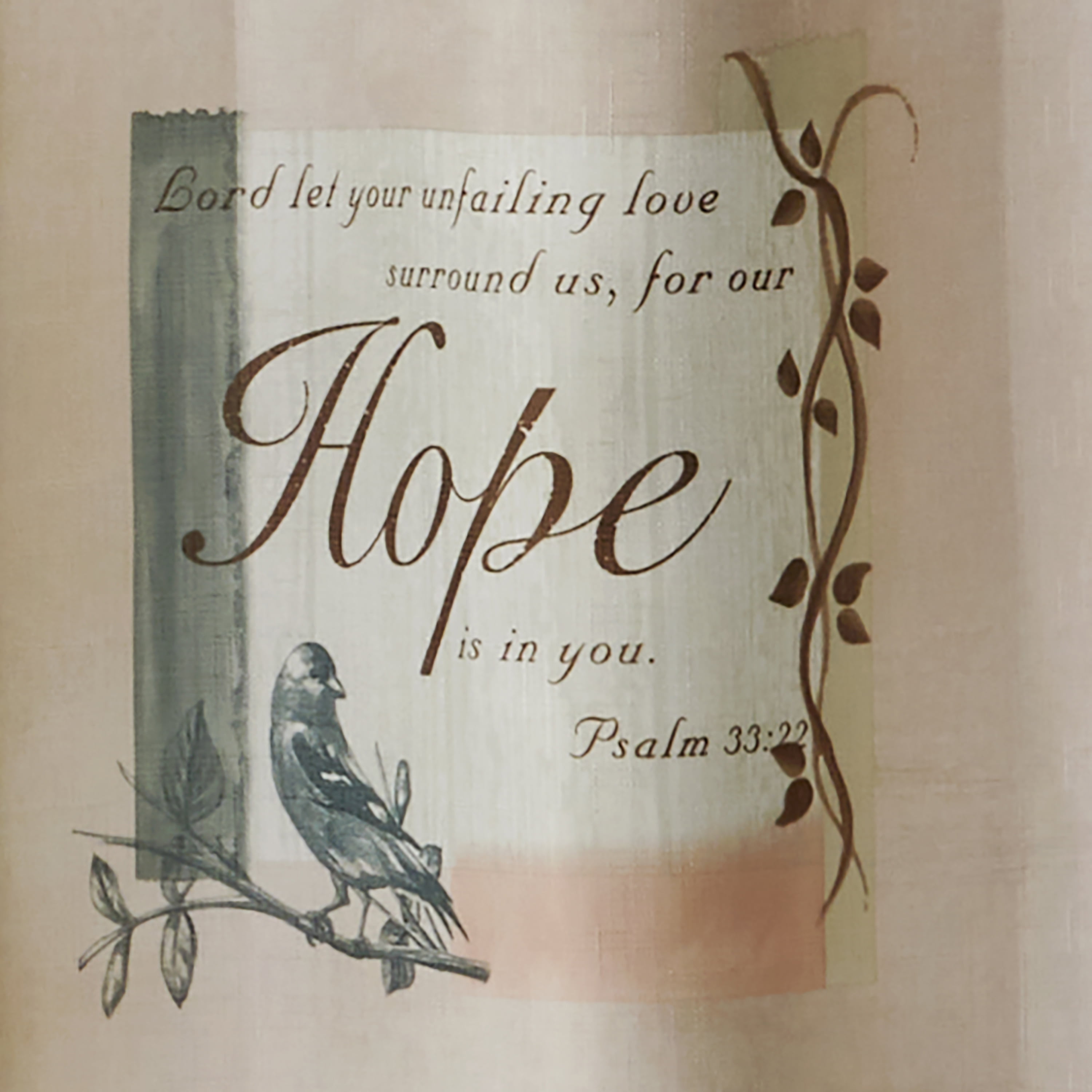 Bring daily hope and inspiration to the bath and shower area using this Mainstays Hopeful shower Curtain. This fabric shower curtain is a collage of hopeful messages that will bring peace and serenity to your daily routine. The printed fabric shower curtain contains images and words, including Faith, Forgive, Hope and Love to inspire users with positive messages, along with pretty flowers, peaceful birds and fluttering butterflies. Not only is the Hopeful shower curtain full of beauty but it’s also easy to maintain being machine washable. 12 button holes line the top for easy hanging. Use of a liner is recommended; liner and hooks sold separately. Shop coordinating items to complete the look; sold separately.