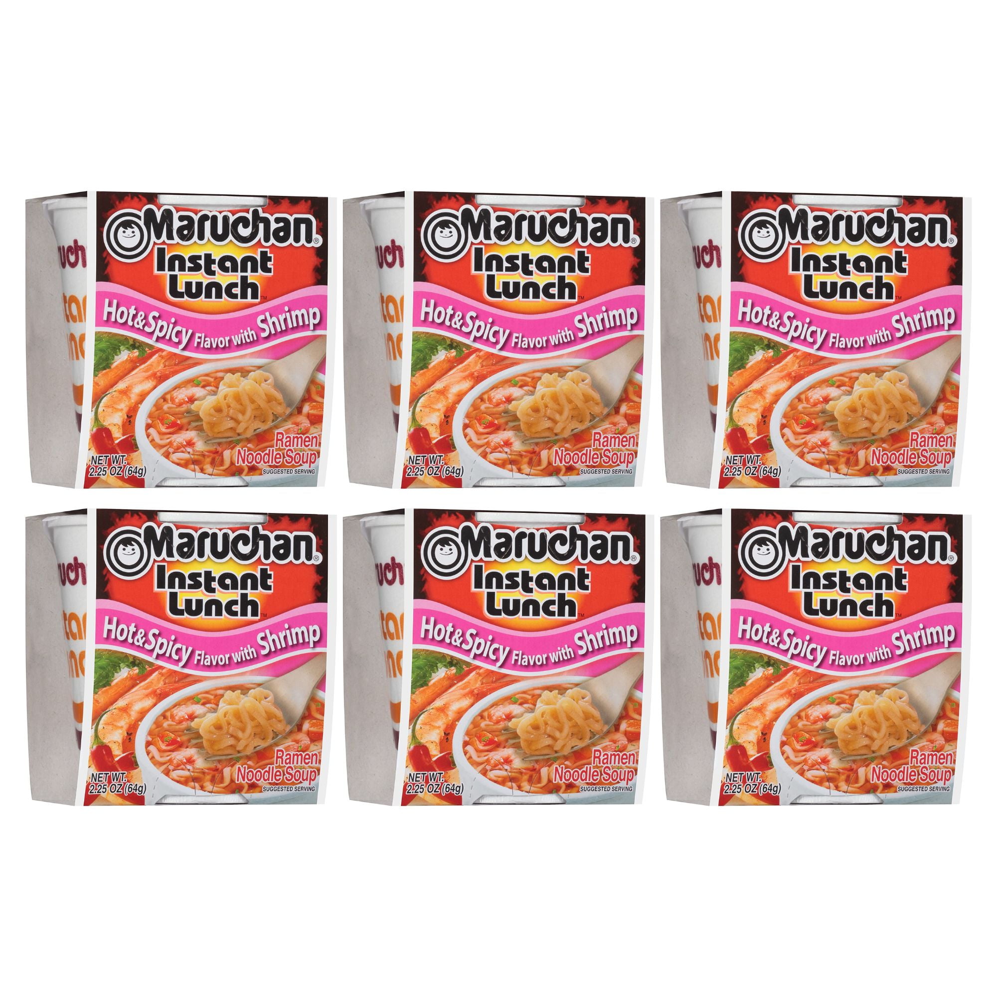 Maruchan Hot and Spicy Shrimp Instant Ramen Noodles, 2.25 oz cup, 6 pack