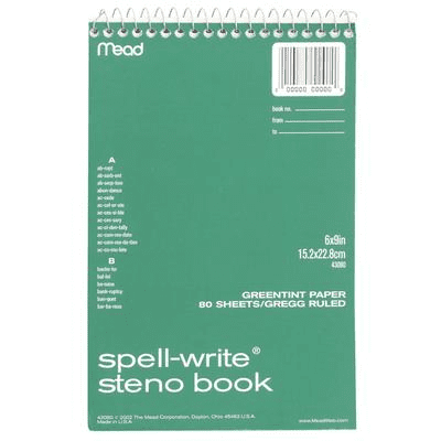 Tags: Cardboard Cover, Green Paper, Mead Spell, Mead-2PK Mead, Mead-2PK Mead Spell, Steno Book, Wire Bound, Write Steno, Write Steno Book