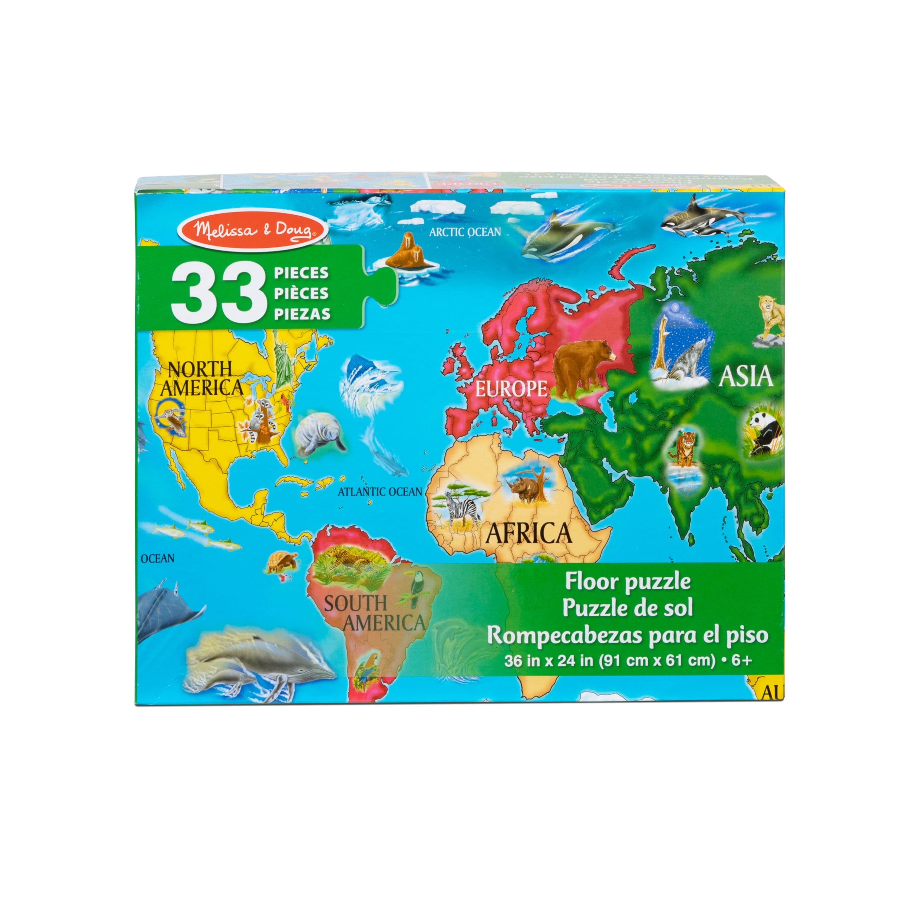 Melissa & Doug World Map Jumbo Jigsaw Floor Puzzle (33 pcs, 2 x 3 feet)