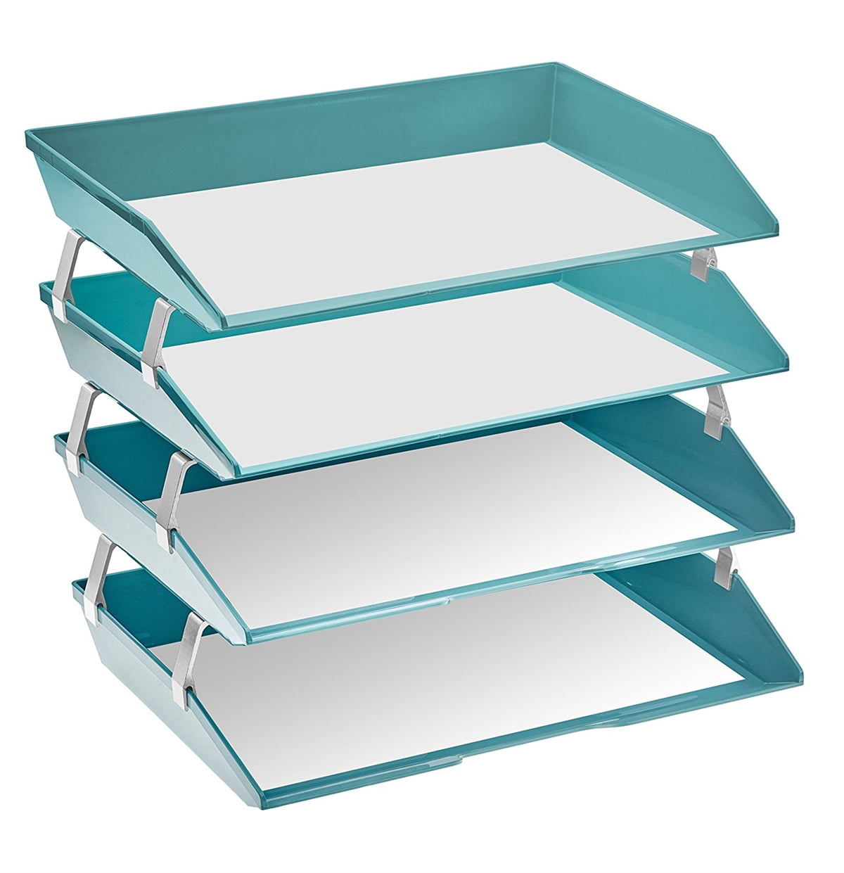 Acrimet Facility 4 Tier Letter Tray Side Load Plastic Desktop File Organizer (Solid Green Color)