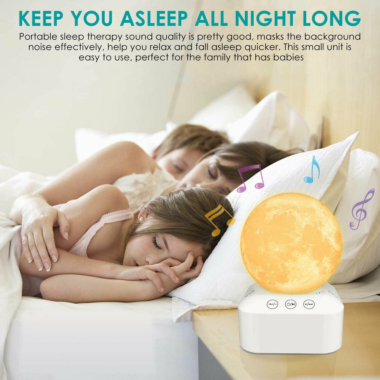 KEEP YOU ASLEEP ALL NIGHT LONG: portable sleep therapy sound quality is pretty good, masks the background noise effectively, help you relax and fall asleep quicker. This small unit is easy to use, perfect for the family that has babies, Helps mask disruptive environmental noises so you or your baby and kids can fall asleep with ease.