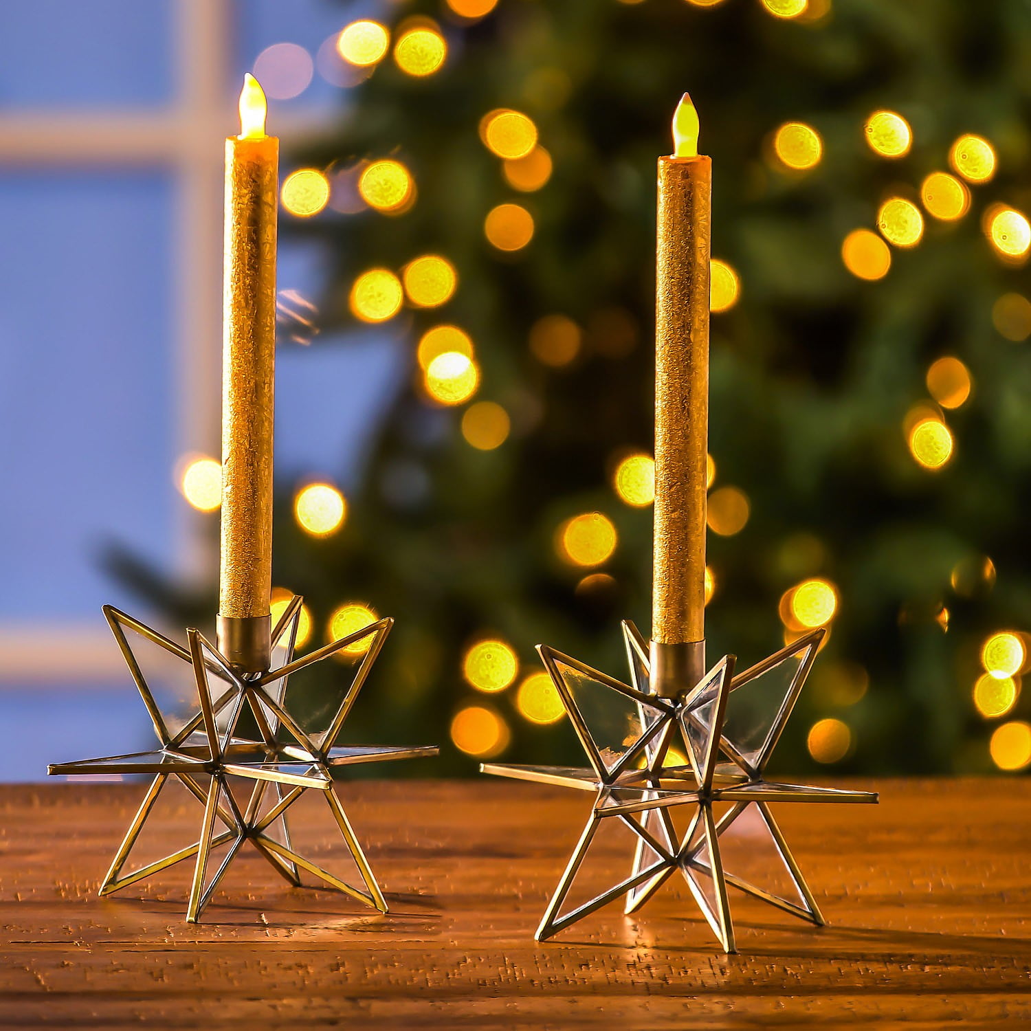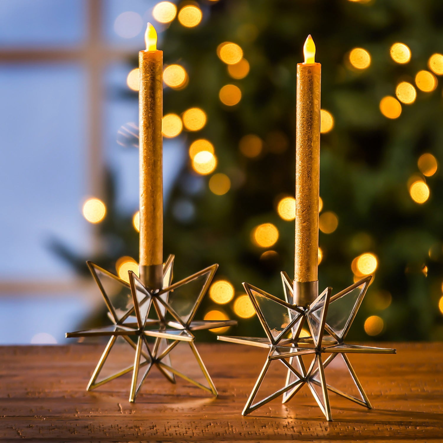 Moravian Star Metal Taper Holder, Set of 2, Brass